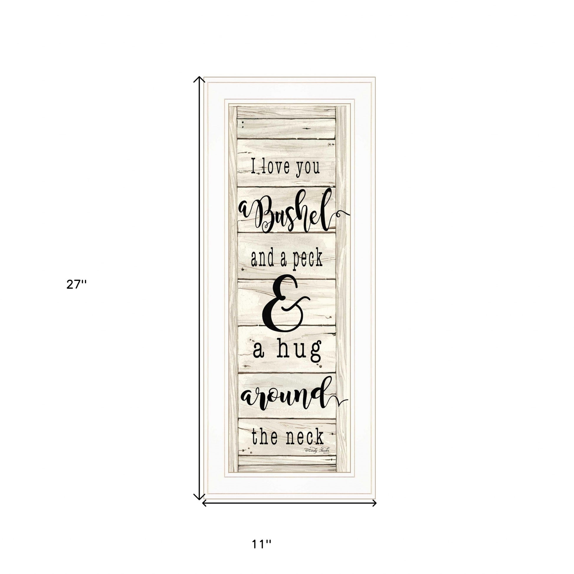 Unique and decorative, this hugs collection 1 white framed print wall art will leave a lasting impression. This print is a visual artistic expression that allows you to decorate your space in style. Reproduced for you on paper, this hanging decorative accent will be a trendy and fashionable way to dress your walls. Adding this hanging wall art to your space to make your room feel more finished and attractive. Instantly liven up your space with this art that brings color and dimension to your walls. 27 inches H x 11 inches W x 1 inches D