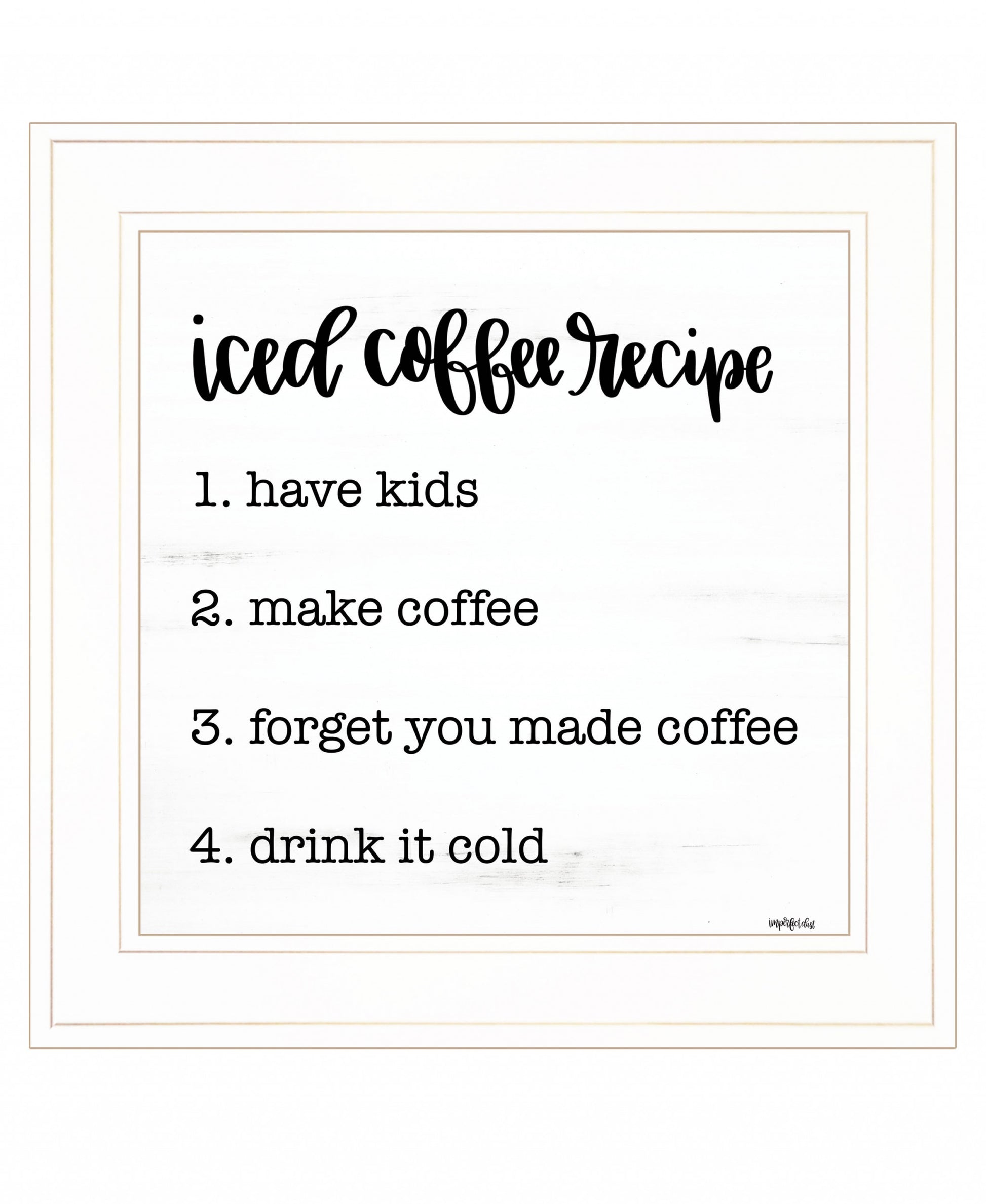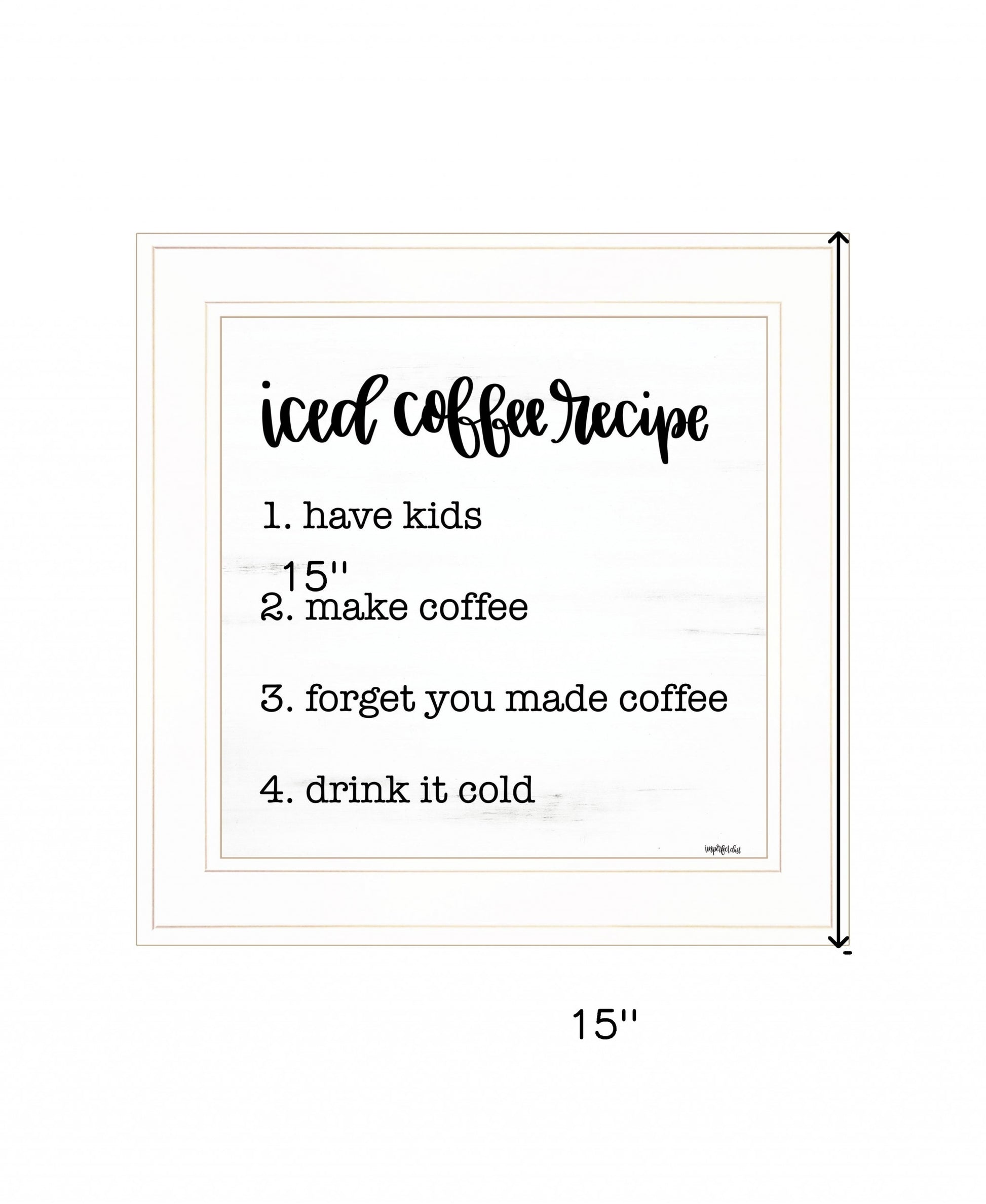 This iced coffee recipe 2 white framed print wall art will add a beautiful decorative accent to your decor. This print is a visual artistic expression that allows you to decorate your space in style. Reproduced for you on wood, this hanging decorative accent will be a trendy and fashionable way to dress your walls in a rustic and modern farmhouse vibe. Adding this hanging wall art to your space to make your room feel more finished and attractive. Utilize this opportunity to create a focal point in the room with this fabulous wall decor option. 15 inches H x 15 inches W x 1 inches D