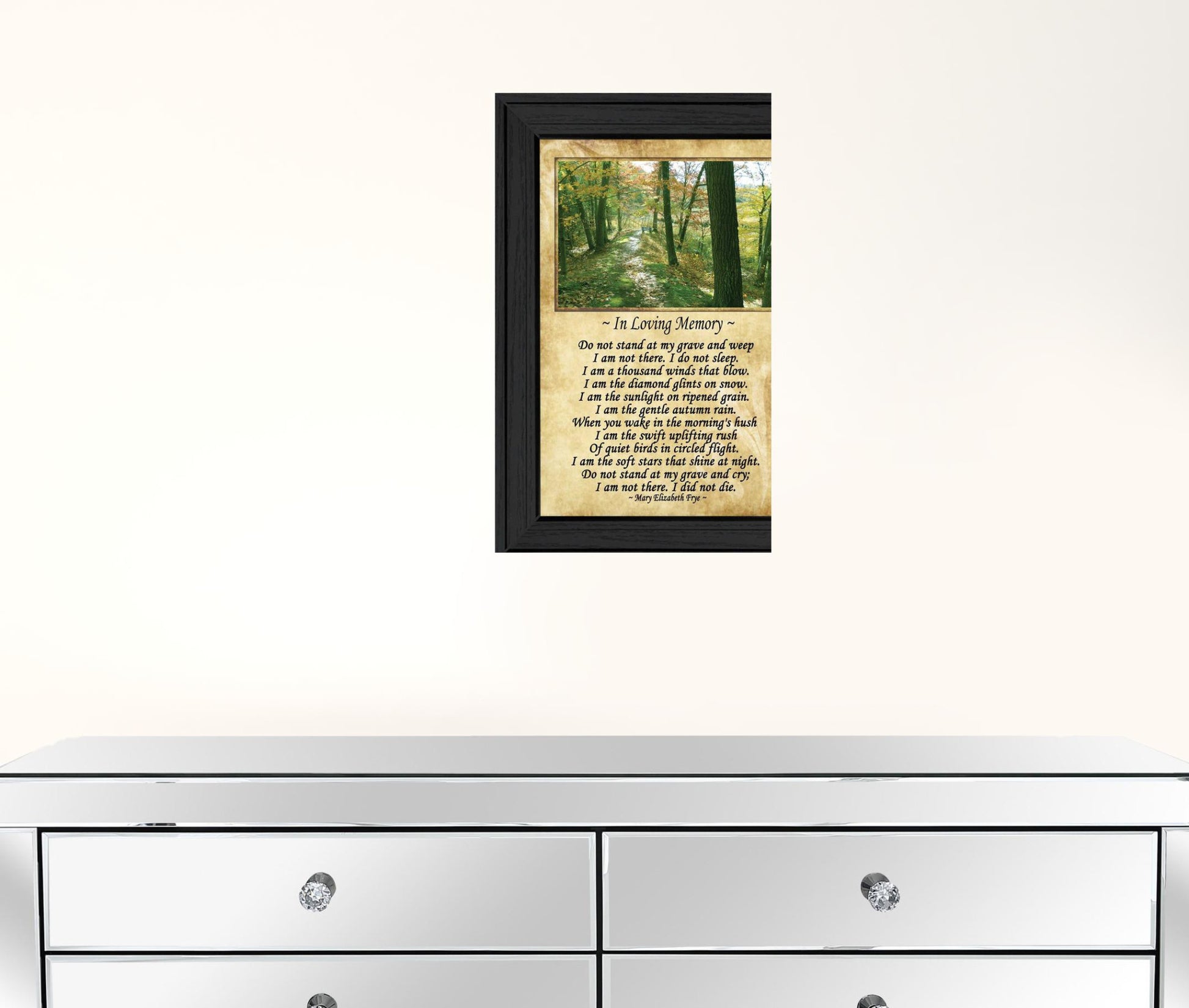 Add an air of fashion to your room and rejuvenate the space with this in loving memory 1 black framed print wall art. This print is a visual artistic expression that allows you to decorate your space in style. Reproduced for you on paper, this hanging decorative accent will be a trendy and fashionable way to dress your walls. Adding this hanging wall art to your space to make your room feel more finished and attractive. Instantly liven up your space with this art that brings color and dimension to your walls. 10 inches H x 14 inches W x 1 inches D