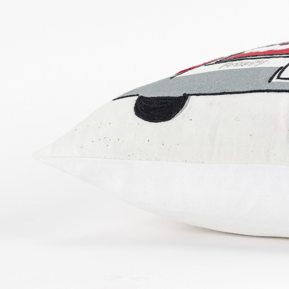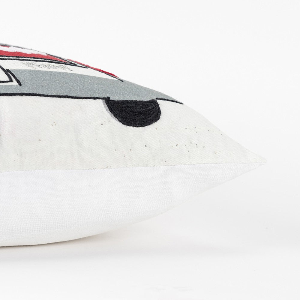 Christmas comes early with this Ivory Frosty Christmas Tree on Truck Throw Pillow that brings with it all the cheer and jolliness of the holiday. Reminiscent of the frosty snowman, the pillow features a snowy Christmas tree being hauled to your home in a grey truck hand-printed over the pillow and embroidered in a quirky design. The pillow is knife-edged to give it a polished look that pairs well with any interior style. Featuring a cotton material with solid coordinated back, the pillow has a hidden zipper closure for ease of cleaning. The pillow includes a polyfill insert that provides a fluffy appearance with a cuddly and soft texture. This detailed Christmas-themed throw pillow is the perfect addition to your living room once you put up your tree and ornaments to induce a holiday cheer in the home. 20" x 20" x 6.25”