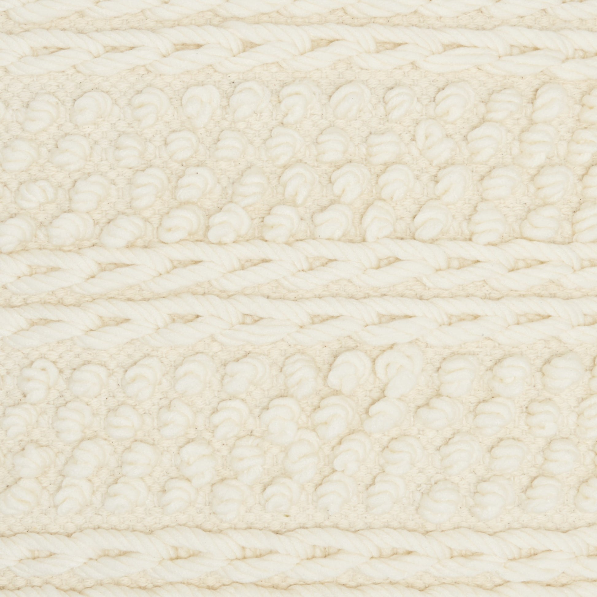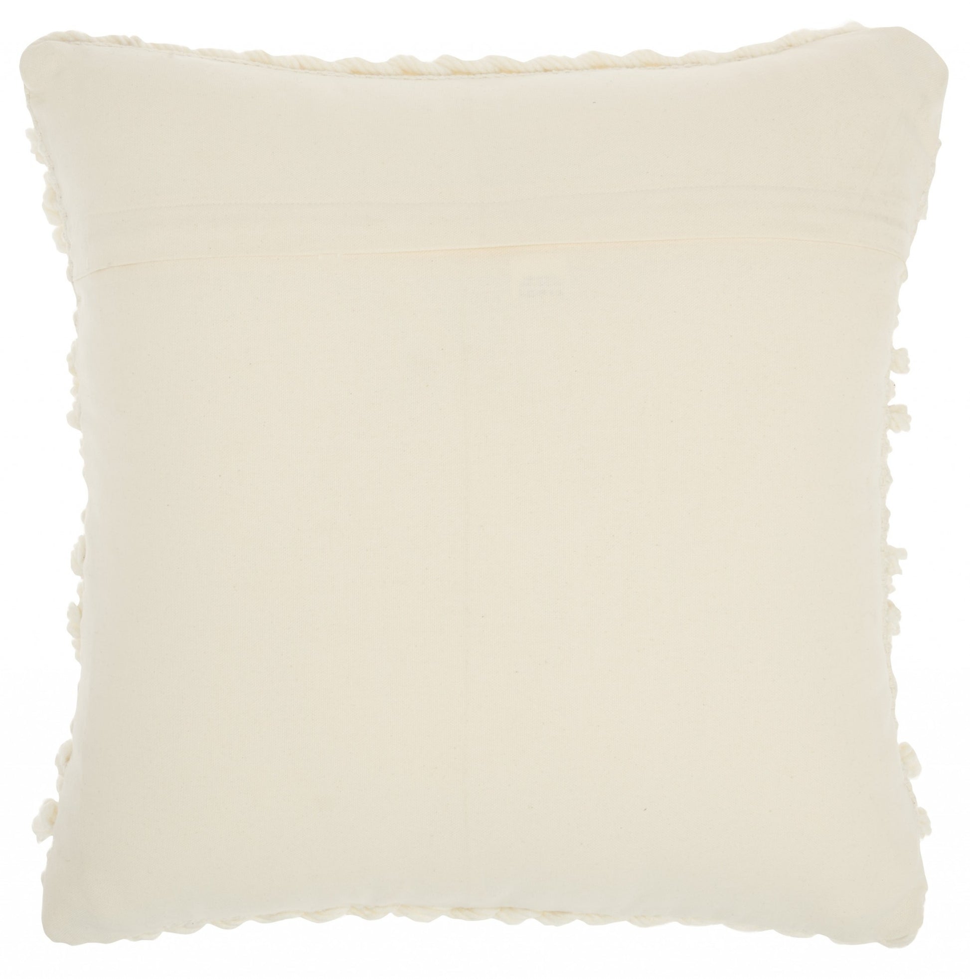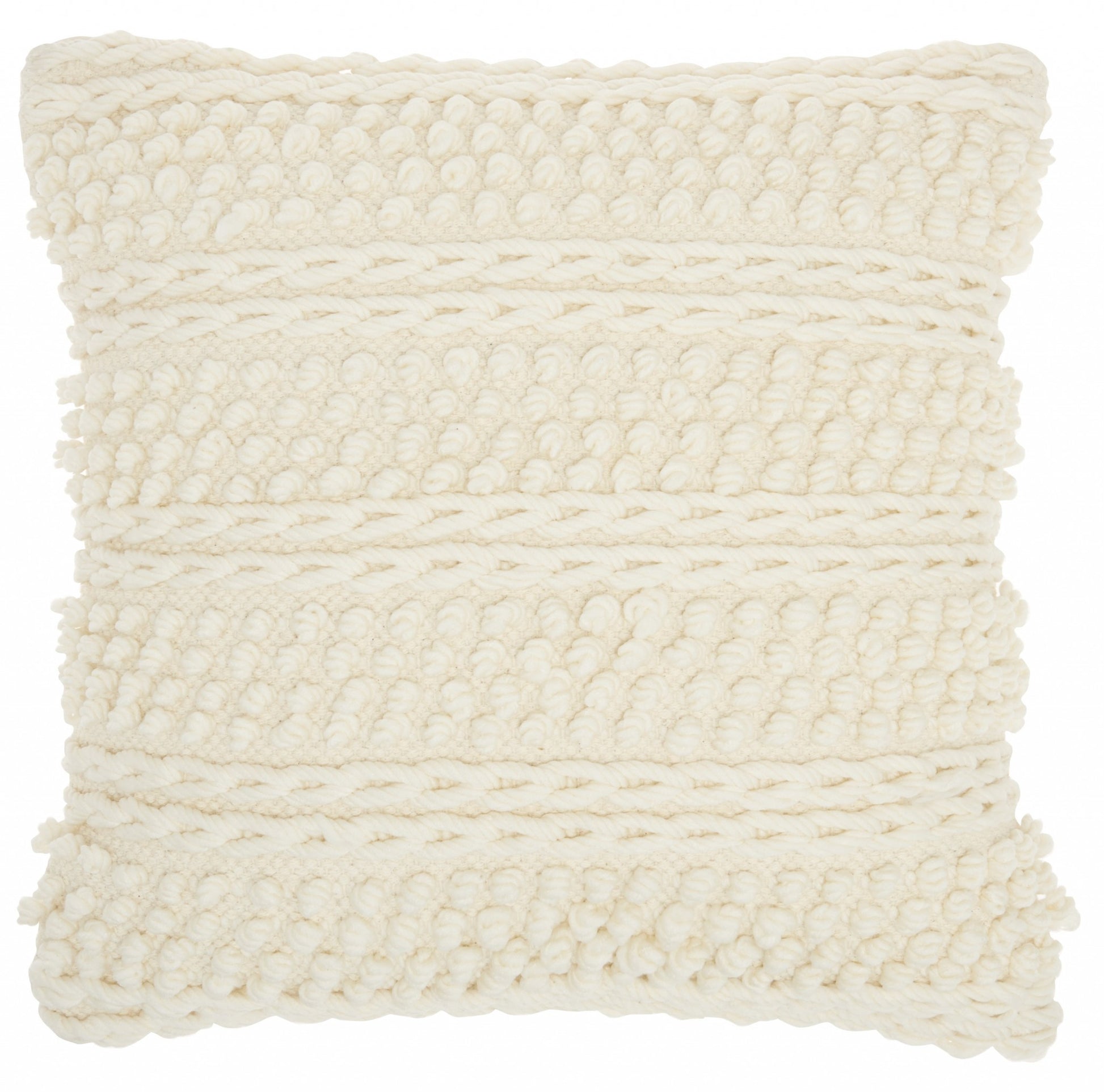 Set a calm and relaxing tone into your living space with this Ivory Textured Dots and Stripes Throw Pillow that is bound to upgrade the aesthetics of any casual or contemporary setting. Featuring a single hued color palette, this pillow is designed in a classic textural pattern with braided stripes and raised pom-pom to create a fun yet luxurious appeal to the entire piece. Carefully crafted with 60% cotton and 40% polyester, this decorative pillow is not only durable and easy to clean but also feels super soft on the touch. This classy and cozy throw pillow will serve as a great ornate accent for your bed, sofa, or chair while harmonizing with the modern decors of your interior. 18” x 18” x 5”