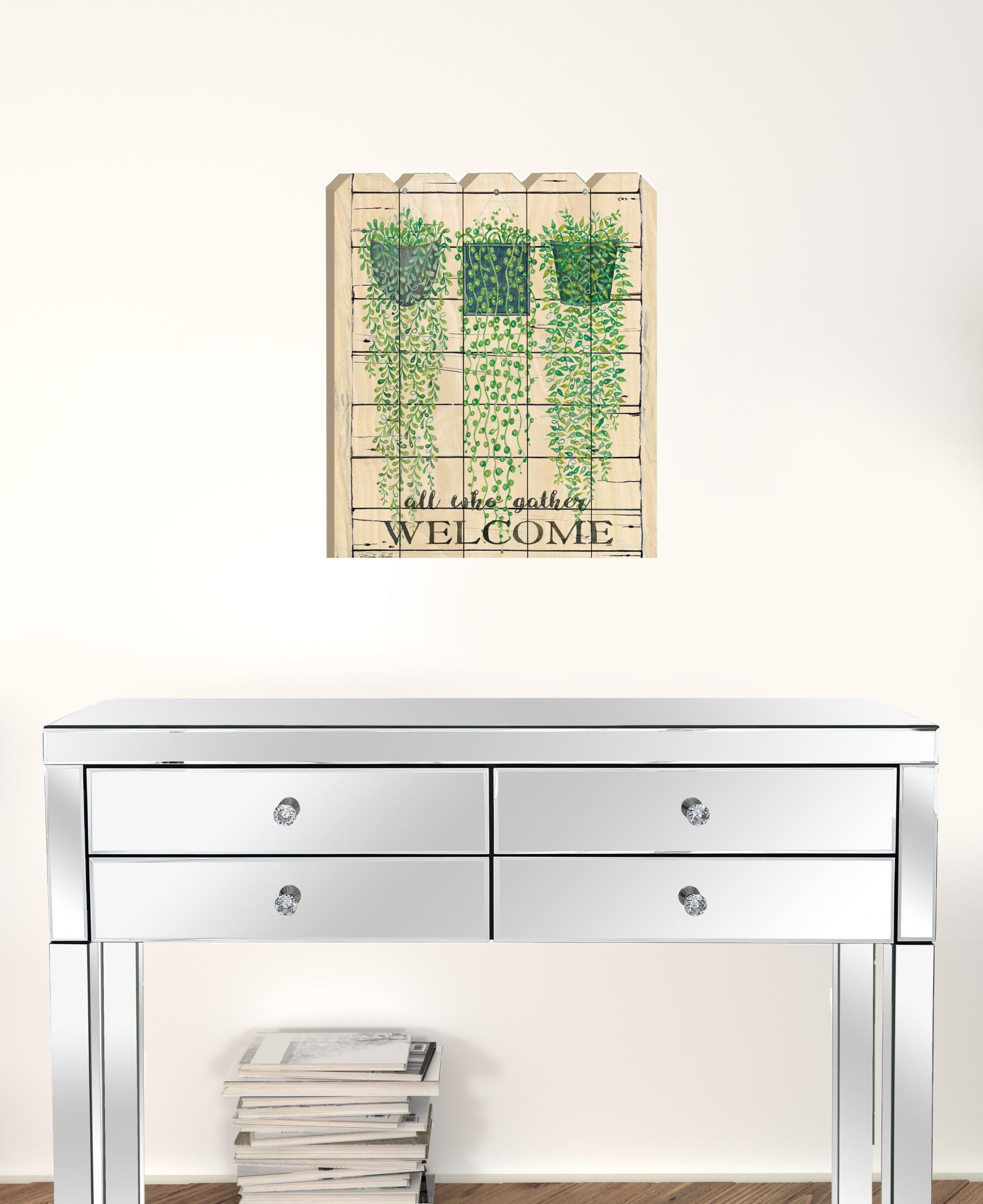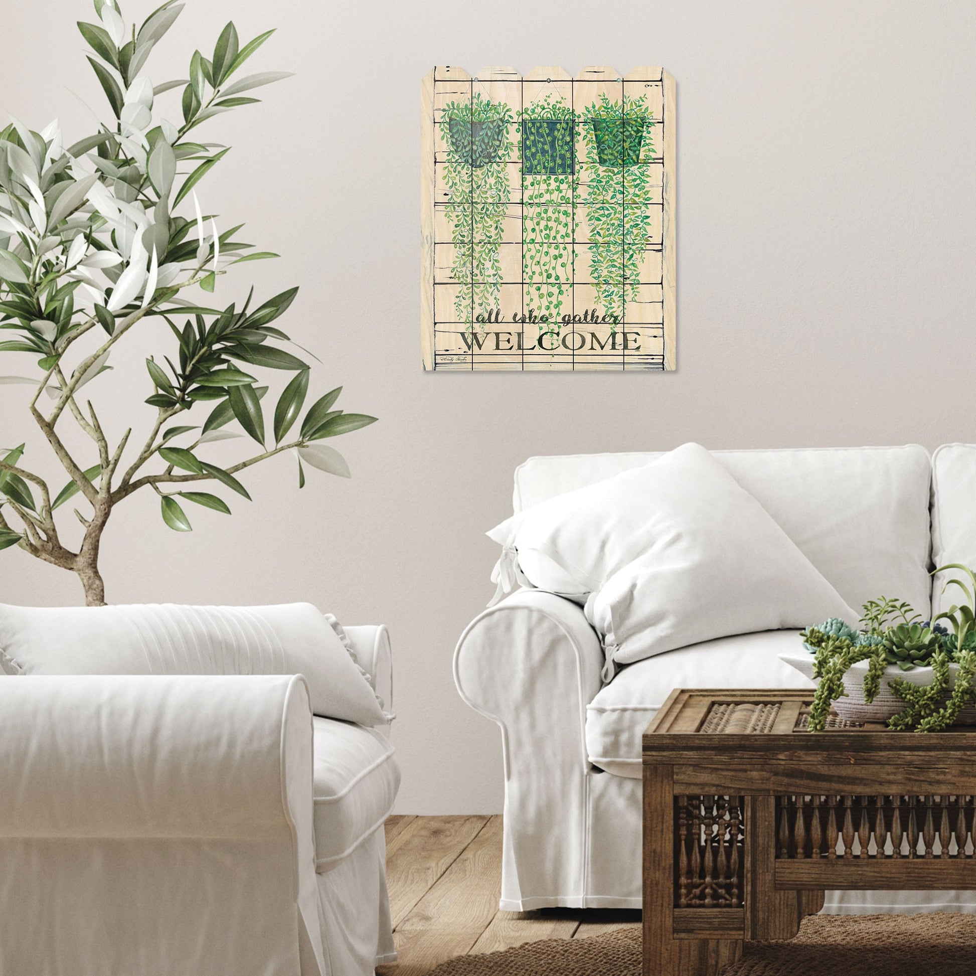 The ivy welcome unframed print wall art is the perfect decorative accessory for your home. This print is a visual artistic expression that allows you to decorate your space in style. Reproduced for you on wood, this hanging decorative accent will be a trendy and fashionable way to dress your walls in a rustic and modern farmhouse vibe. Hang on your wall to add some up to date fashion and decoration. Utilize this opportunity to create a focal point in the room with this fabulous wall decor option. 20 inches H x 15 inches W x 1 inches D