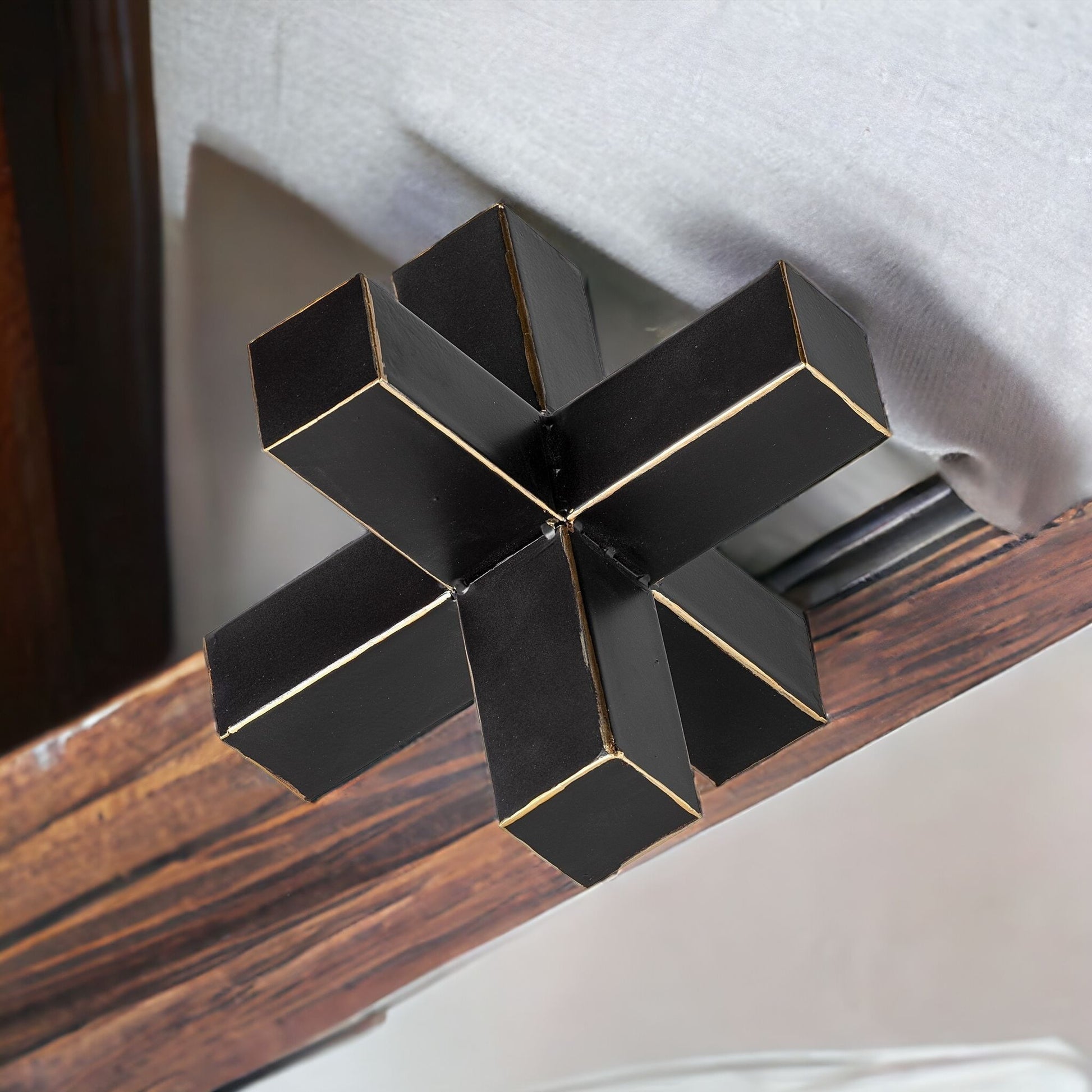 This Jumbo Black and Gold Metal Decorative Jack will be the perfect way to add some contemporary flair to your home. This decor piece is made from solid metal and has a shape that resembles a jack. The geometric design has a matte black color and the edges have a rustic gold finish on top. This decor piece is something that will look great on your bookshelves, your coffee table and even as a stand alone piece around your home owing to its larger size. The neutral colors will work with any interior and decor style you already have in your home. 8" H x 8" W x 9" D