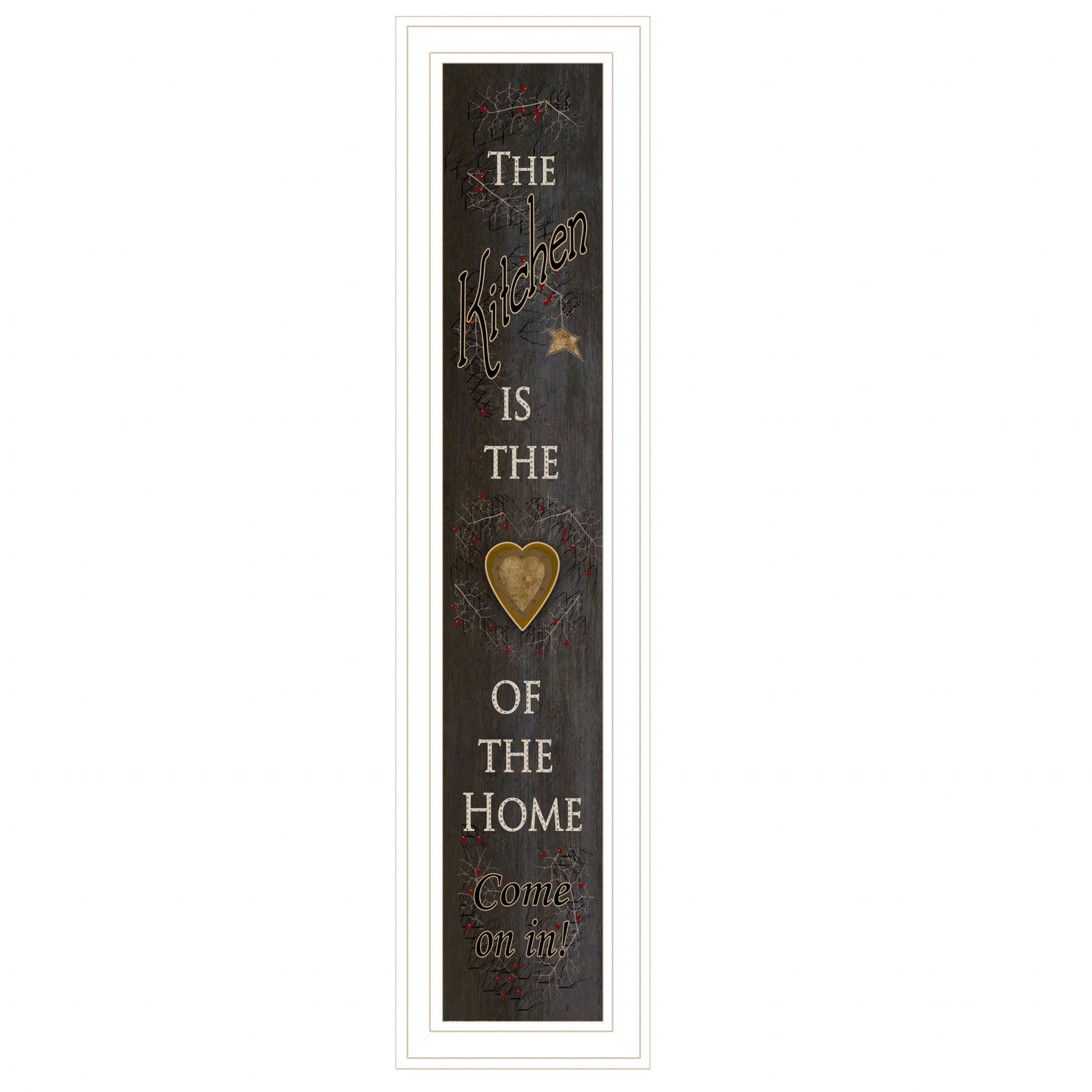 The kitchen is the heart of the home 19 white framed print wall art is the perfect decorative accessory for your home. This print is a visual artistic expression that allows you to decorate your space in style. Reproduced for you on paper, this hanging decorative accent will be a trendy and fashionable way to dress your walls. Adding this hanging wall art to your space to make your room feel more finished and attractive. Utilize this opportunity to create a focal point in the room with this fabulous wall decor option. 33 inches H x 9 inches W x 1 inches D