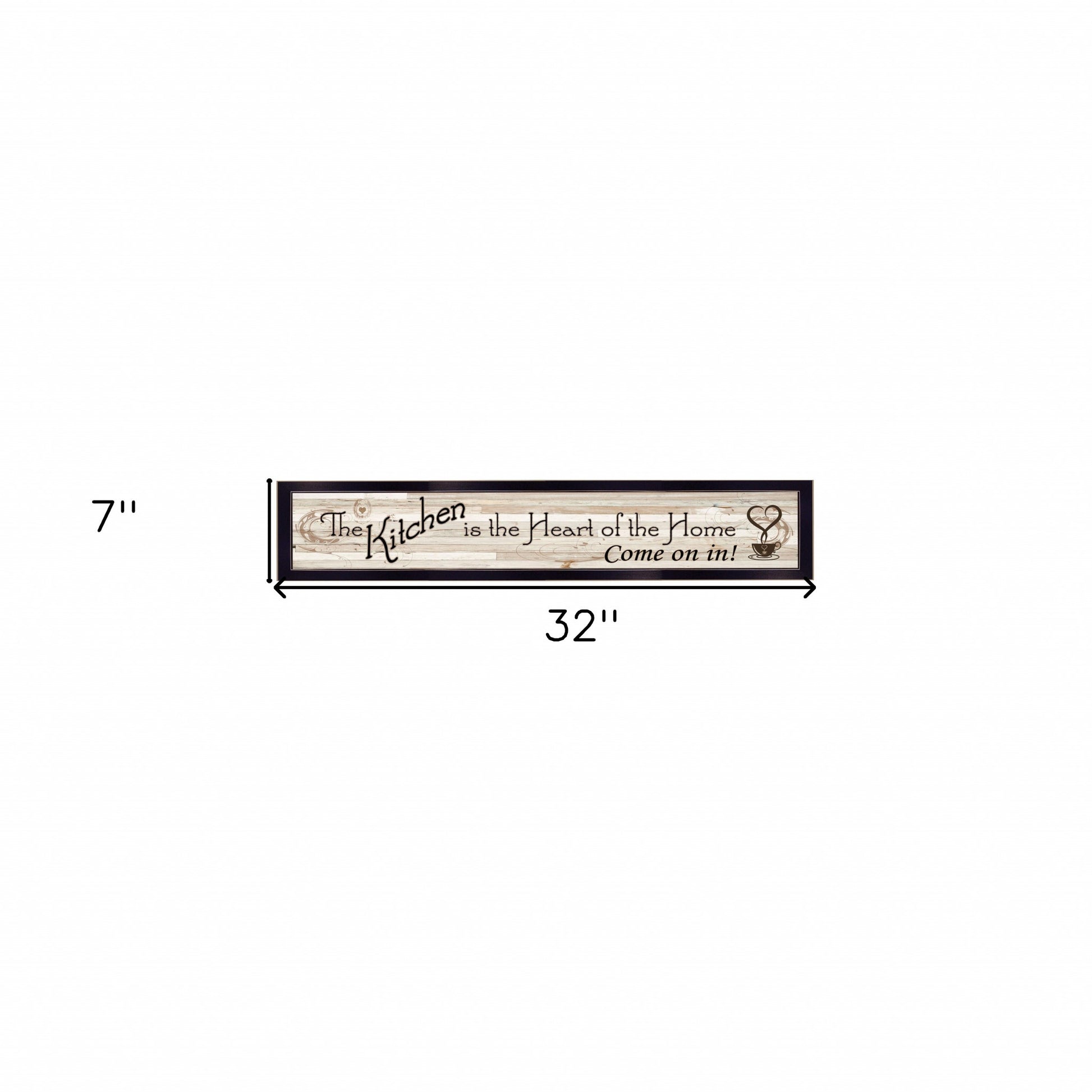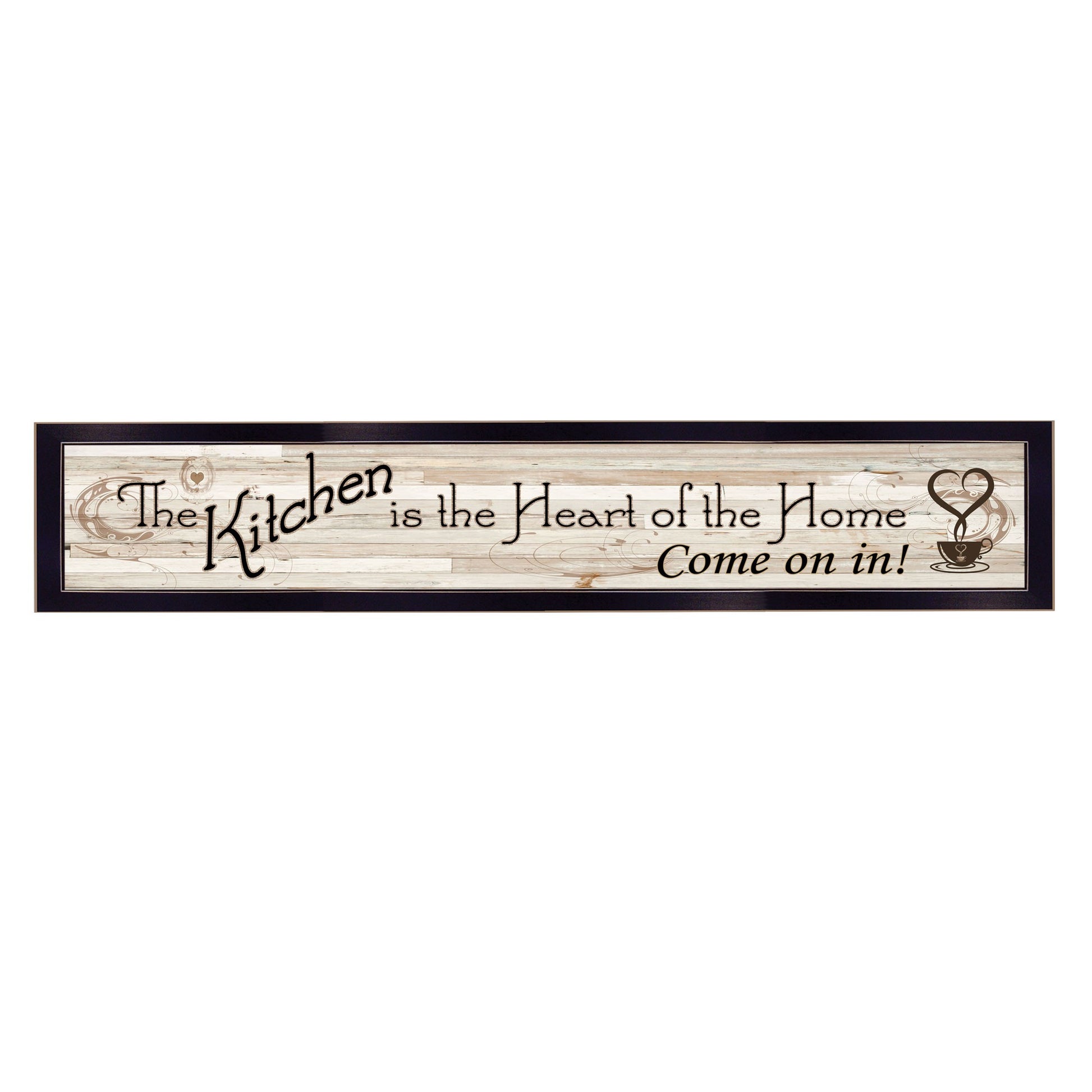 Add an air of fashion to your room and rejuvenate the space with this kitchen is the heart of the home 2 black framed print wall art. This print is a visual artistic expression that allows you to decorate your space in style. Reproduced for you on paper, this hanging decorative accent will be a trendy and fashionable way to dress your walls. Adding this hanging wall art to your space to make your room feel more finished and attractive. Instantly liven up your space with this art that brings color and dimension to your walls. 7 inches H x 32 inches W x 1 inches D