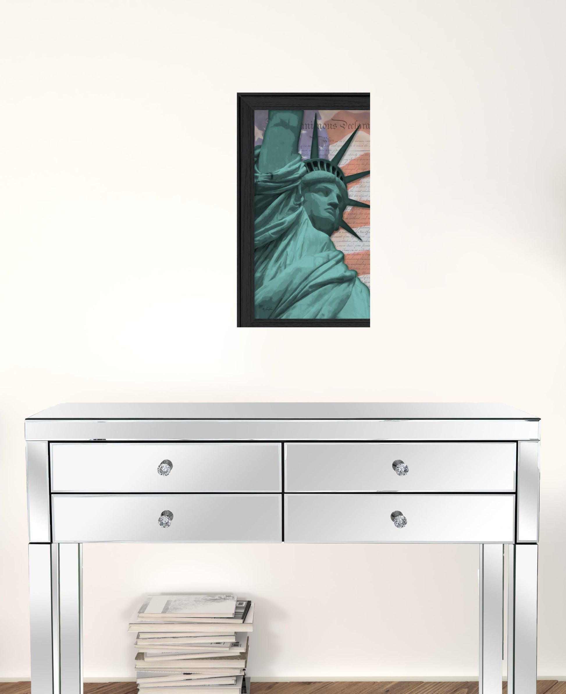 Bring some sizzle to your space with this eye-catching lady liberty black framed print wall art. This print is a visual artistic expression that allows you to decorate your space in style. Reproduced for you on paper, this hanging decorative accent will be a trendy and fashionable way to dress your walls. Adding this hanging wall art to your space to make your room feel more finished and attractive. Instantly liven up your space with this art that brings color and dimension to your walls. 21 inches H x 15 inches W x 1 inches D
