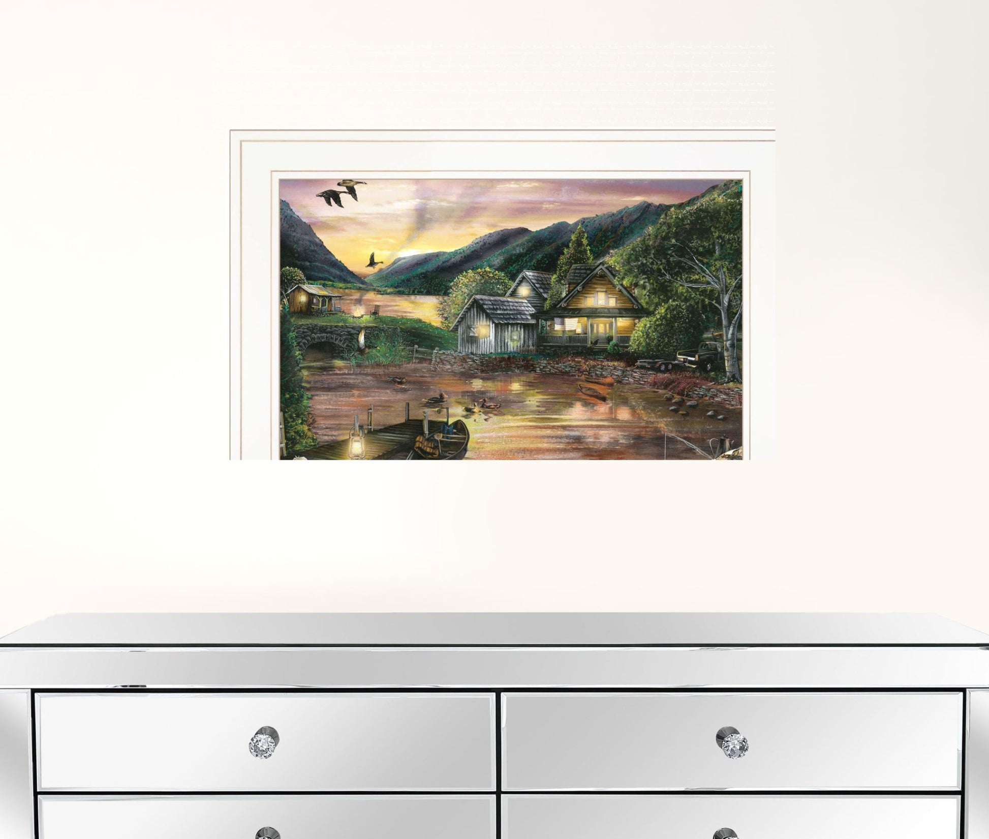 This lakefront camping ii 2 white framed print wall art will add a beautiful decorative accent to your decor. This print is a visual artistic expression that allows you to decorate your space in style. Reproduced for you on paper, this hanging decorative accent will be a trendy and fashionable way to dress your walls. Hang on your wall to add some up to date fashion and decoration. Instantly liven up your space with this art that brings color and dimension to your walls. 15 inches H x 19 inches W x 1 inches D