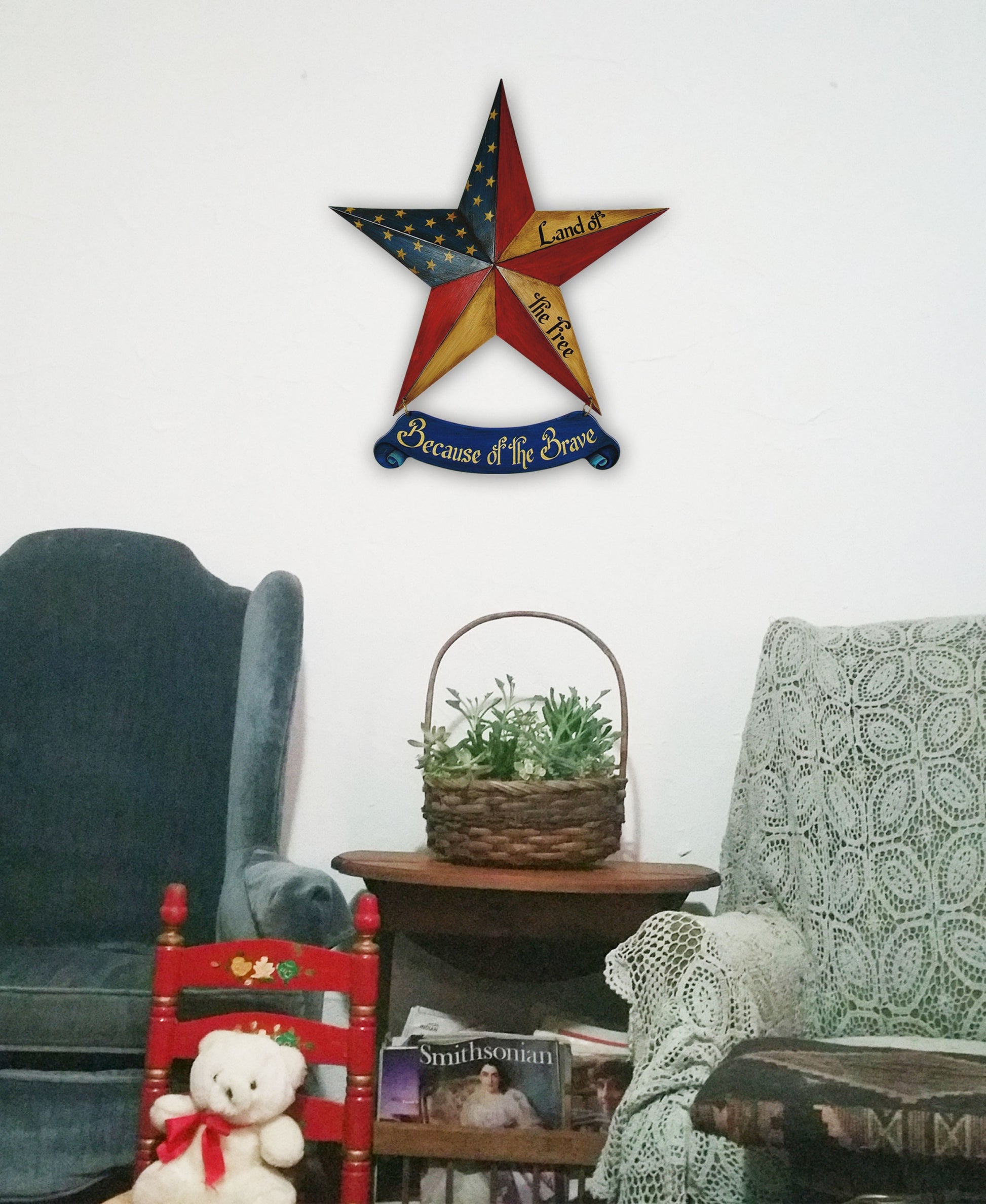 This land of the free unframed print wall art will add a beautiful decorative accent to your decor. This print is a visual artistic expression that allows you to decorate your space in style. Reproduced for you on metal, this hanging decorative accent will be a trendy and fashionable way to dress your walls. Hang on your wall to add some up to date fashion and decoration. Instantly liven up your space with this art that brings color and dimension to your walls. 25 inches H x 24 inches W x 4 inches D