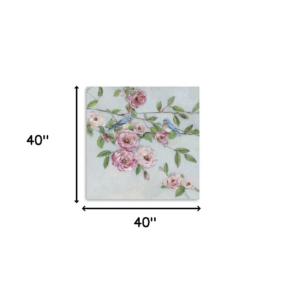 Add an air of fashion to your room and rejuvenate the space with this large pretty pink blooms canvas wall art. This print is a visual artistic expression that allows you to decorate your space in style. Reproduced for you on canvas, this hanging decorative accent will be a trendy and fashionable way to dress your walls. Adding this hanging wall art to your space to make your room feel more finished and attractive. Instantly liven up your space with this art that brings color and dimension to your walls. 40 inches H x 40 inches W x 1.25 inches D