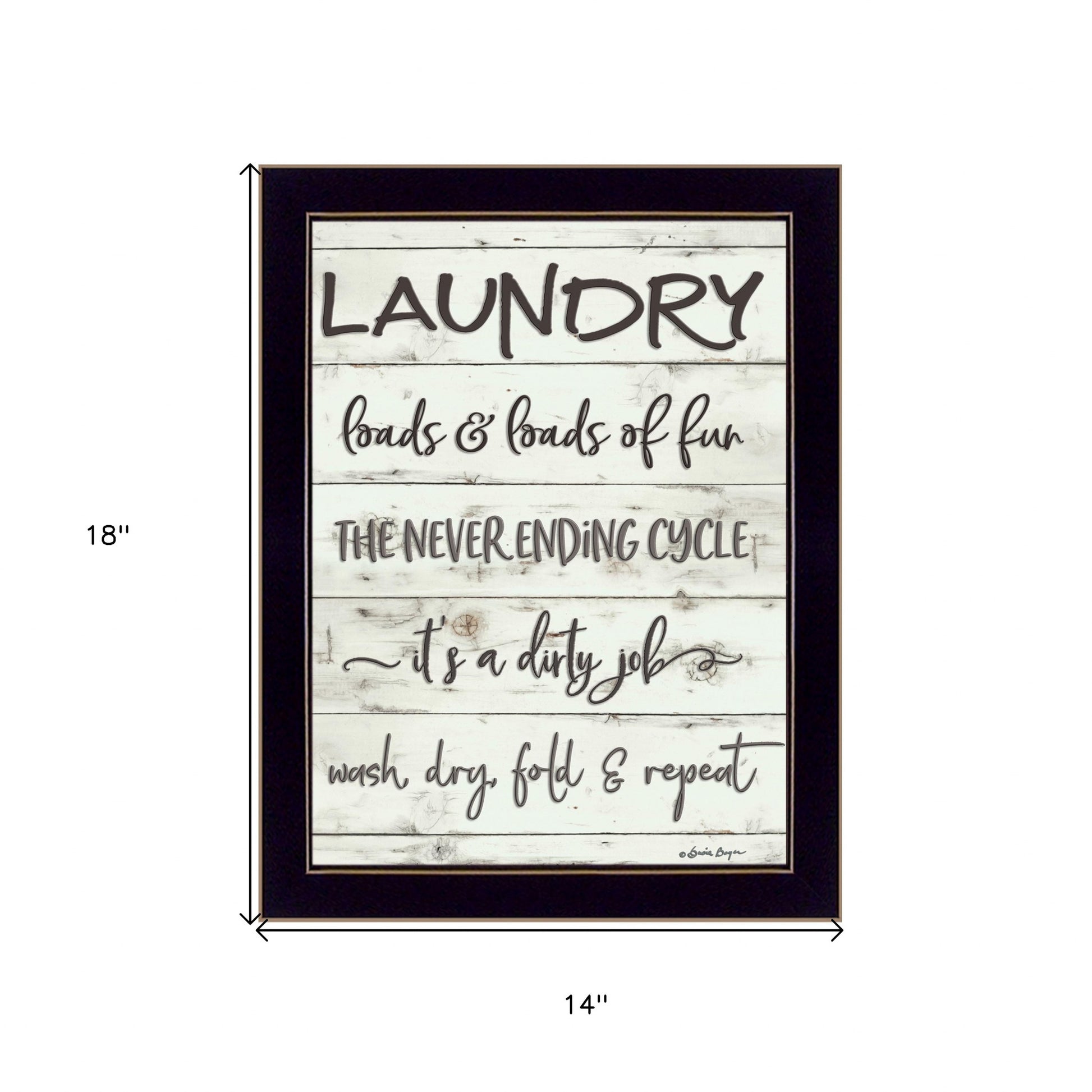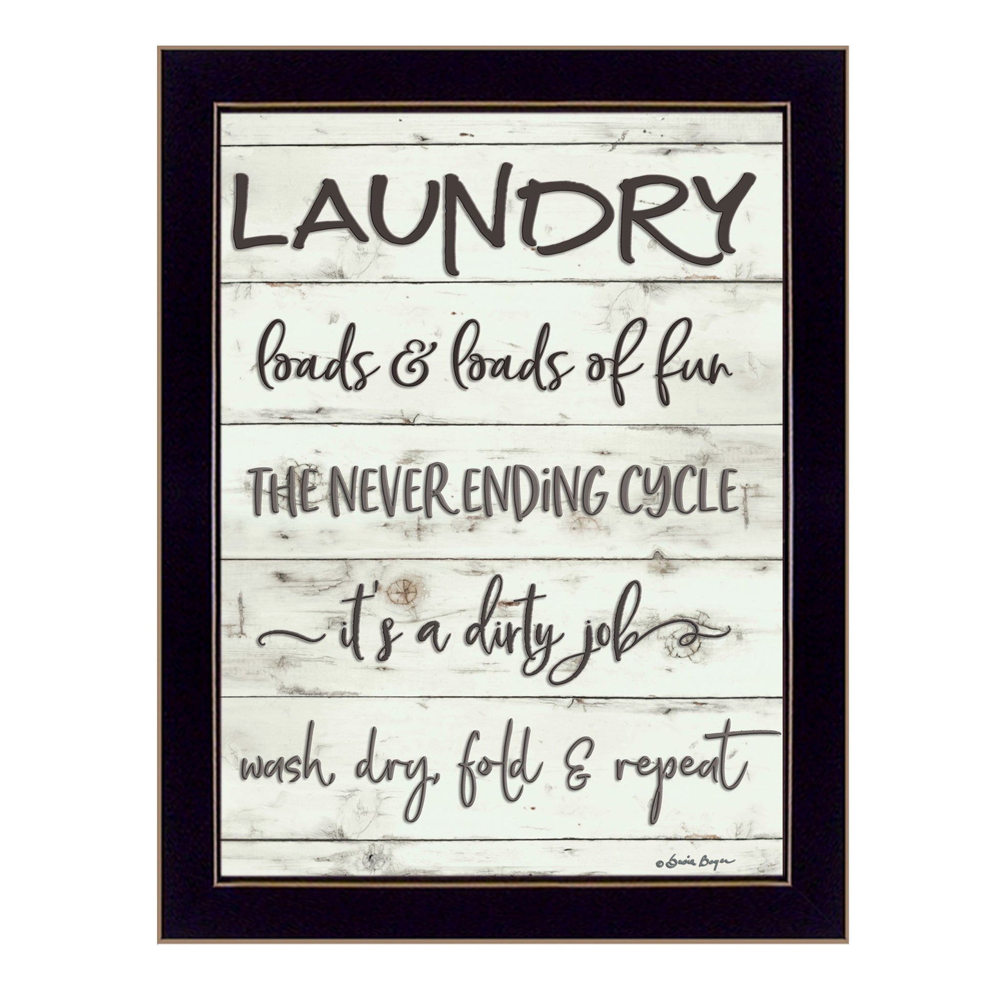 Unique and decorative, this laundry 3 black framed print wall art will leave a lasting impression. This print is a visual artistic expression that allows you to decorate your space in style. Reproduced for you on paper, this hanging decorative accent will be a trendy and fashionable way to dress your walls. Adding this hanging wall art to your space to make your room feel more finished and attractive. Instantly liven up your space with this art that brings color and dimension to your walls. 18 inches H x 14 inches W x 1 inches D