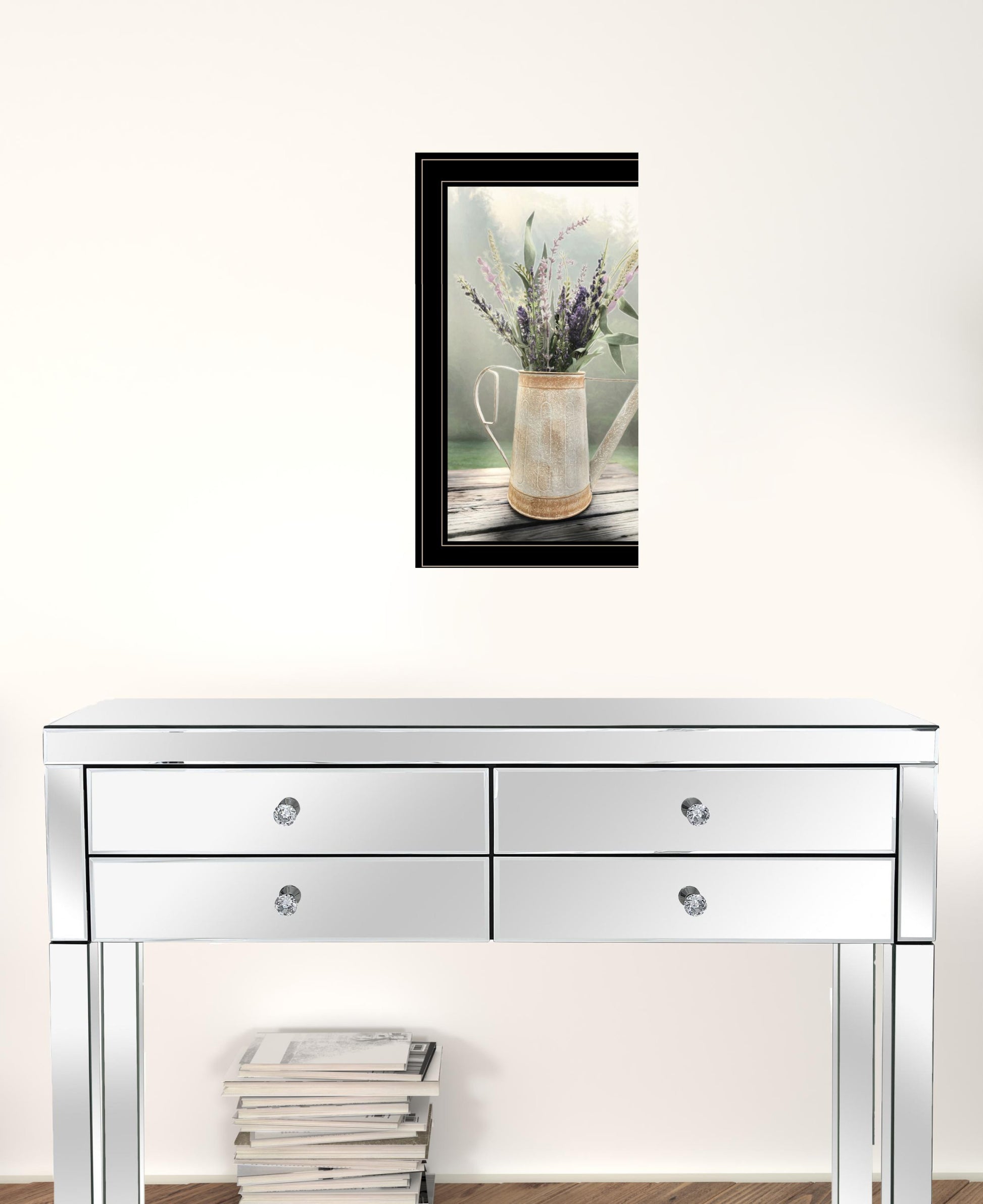 Unique and decorative, this lavender watering can 1 black framed print wall art will leave a lasting impression. This print is a visual artistic expression that allows you to decorate your space in style. Reproduced for you on paper, this hanging decorative accent will be a trendy and fashionable way to dress your walls. Adding this hanging wall art to your space to make your room feel more finished and attractive. Utilize this opportunity to create a focal point in the room with this fabulous wall decor option. 21 inches H x 15 inches W x 1 inches D