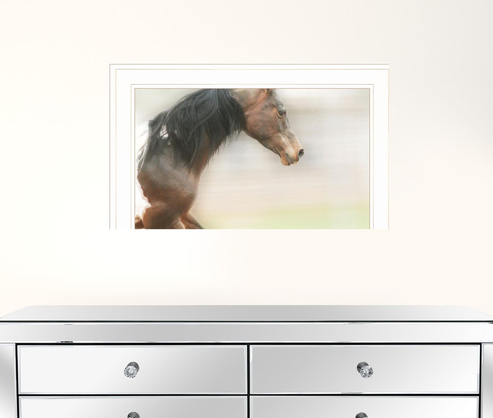 Bring some sizzle to your space with this eye-catching leap of faith 2 white framed print wall art. Bring a little bit of the farm indoors when you hang this horse artwork. This print is a visual artistic expression that allows you to decorate your space in style. Reproduced for you on paper, this hanging decorative accent will be a trendy and fashionable way to dress your walls. Hang on your wall to add some up to date fashion and decoration. Utilize this opportunity to create a focal point in the room with this fabulous wall decor option. 15 inches H x 21 inches W x 1 inches D