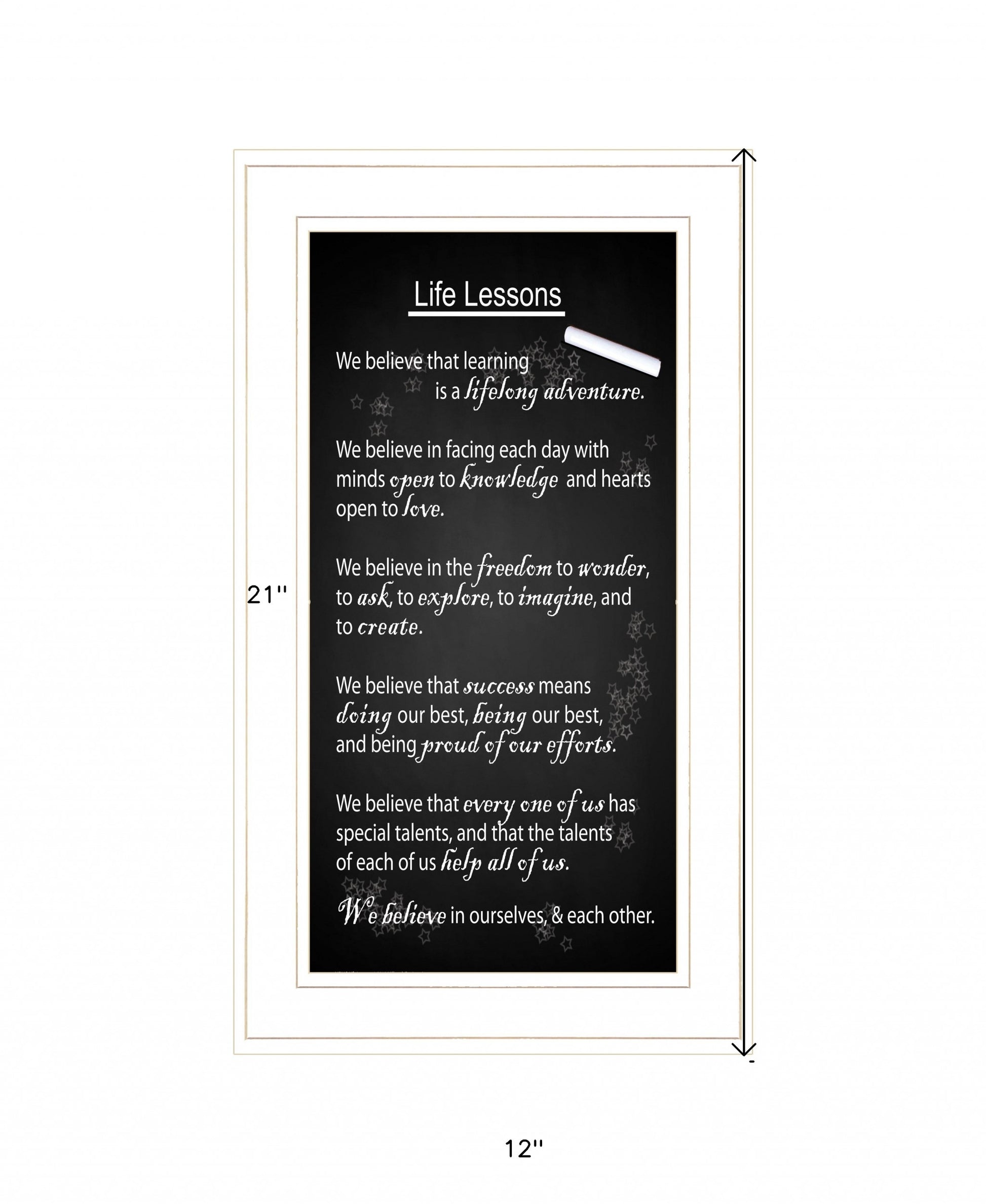Unique and decorative, this life lessons 3 white framed print wall art will leave a lasting impression. This print is a visual artistic expression that allows you to decorate your space in style. Reproduced for you on paper, this hanging decorative accent will be a trendy and fashionable way to dress your walls. Adding this hanging wall art to your space to make your room feel more finished and attractive. Utilize this opportunity to create a focal point in the room with this fabulous wall decor option. 21 inches H x 12 inches W x 1 inches D