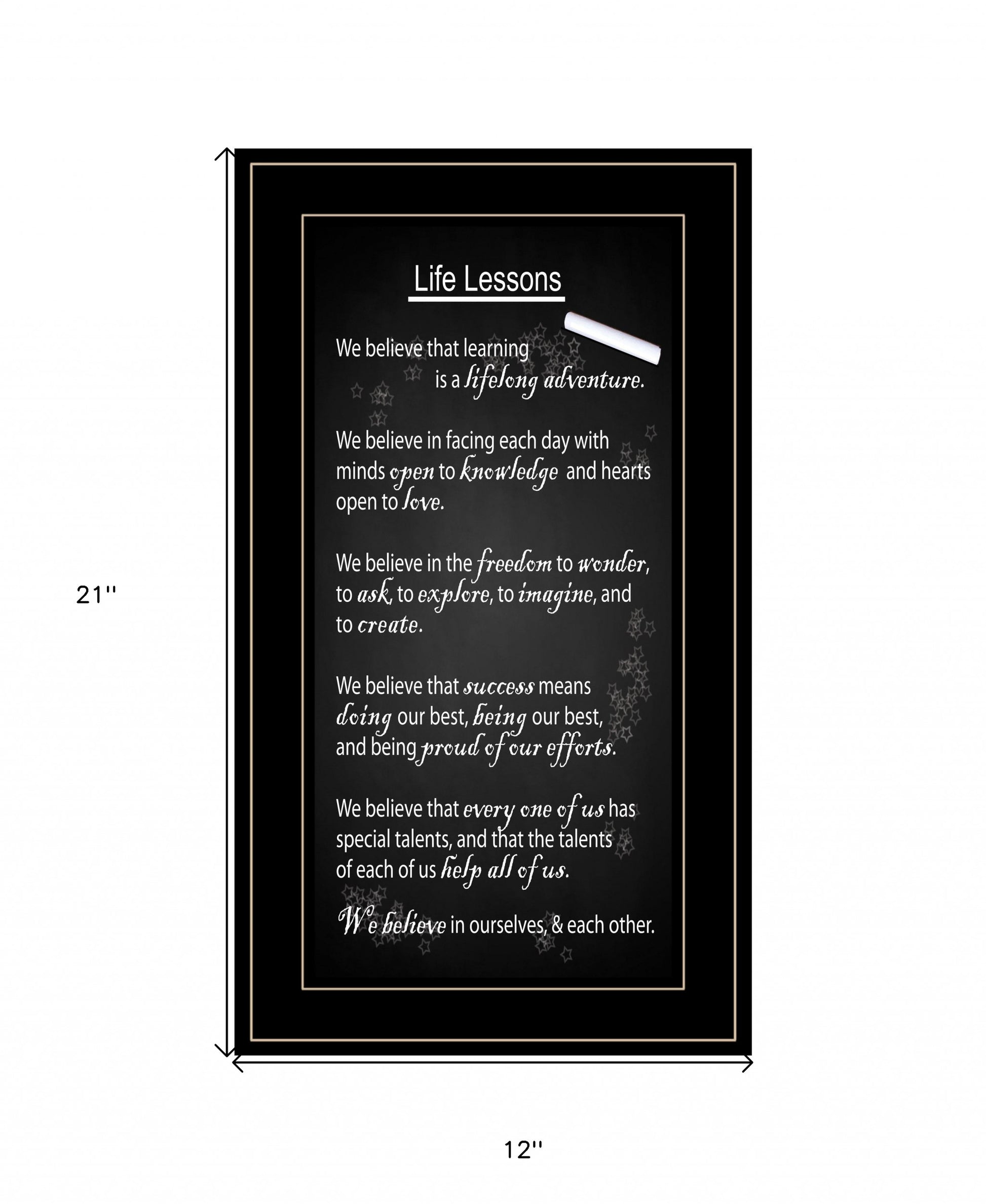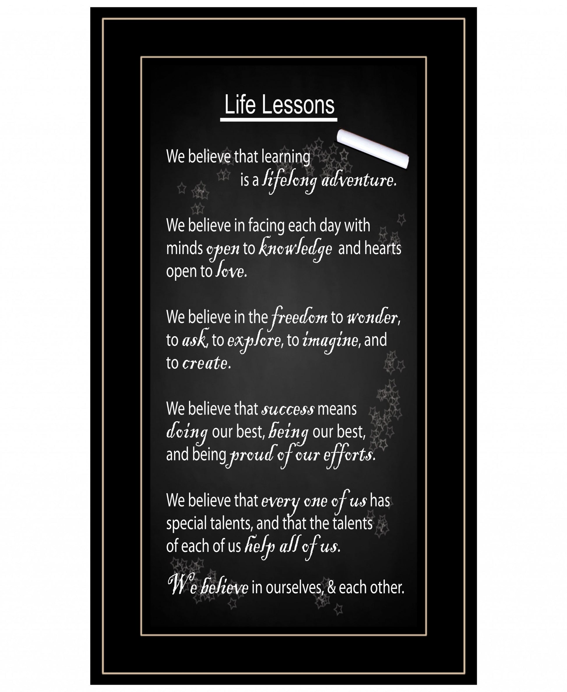 This life lessons 4 black framed print wall art will add a beautiful decorative accent to your decor. This print is a visual artistic expression that allows you to decorate your space in style. Reproduced for you on paper, this hanging decorative accent will be a trendy and fashionable way to dress your walls. Adding this hanging wall art to your space to make your room feel more finished and attractive. Utilize this opportunity to create a focal point in the room with this fabulous wall decor option. 21 inches H x 12 inches W x 1 inches D