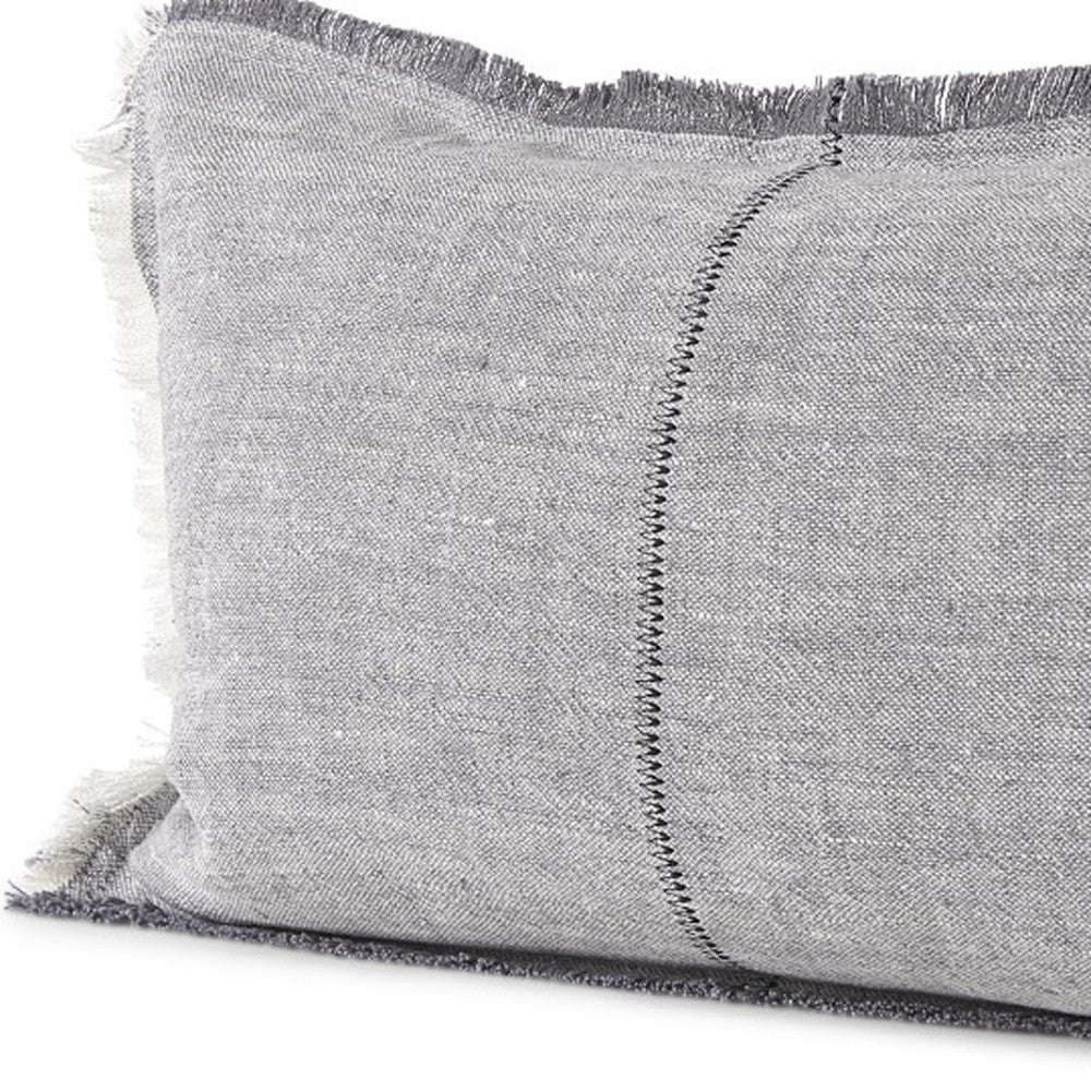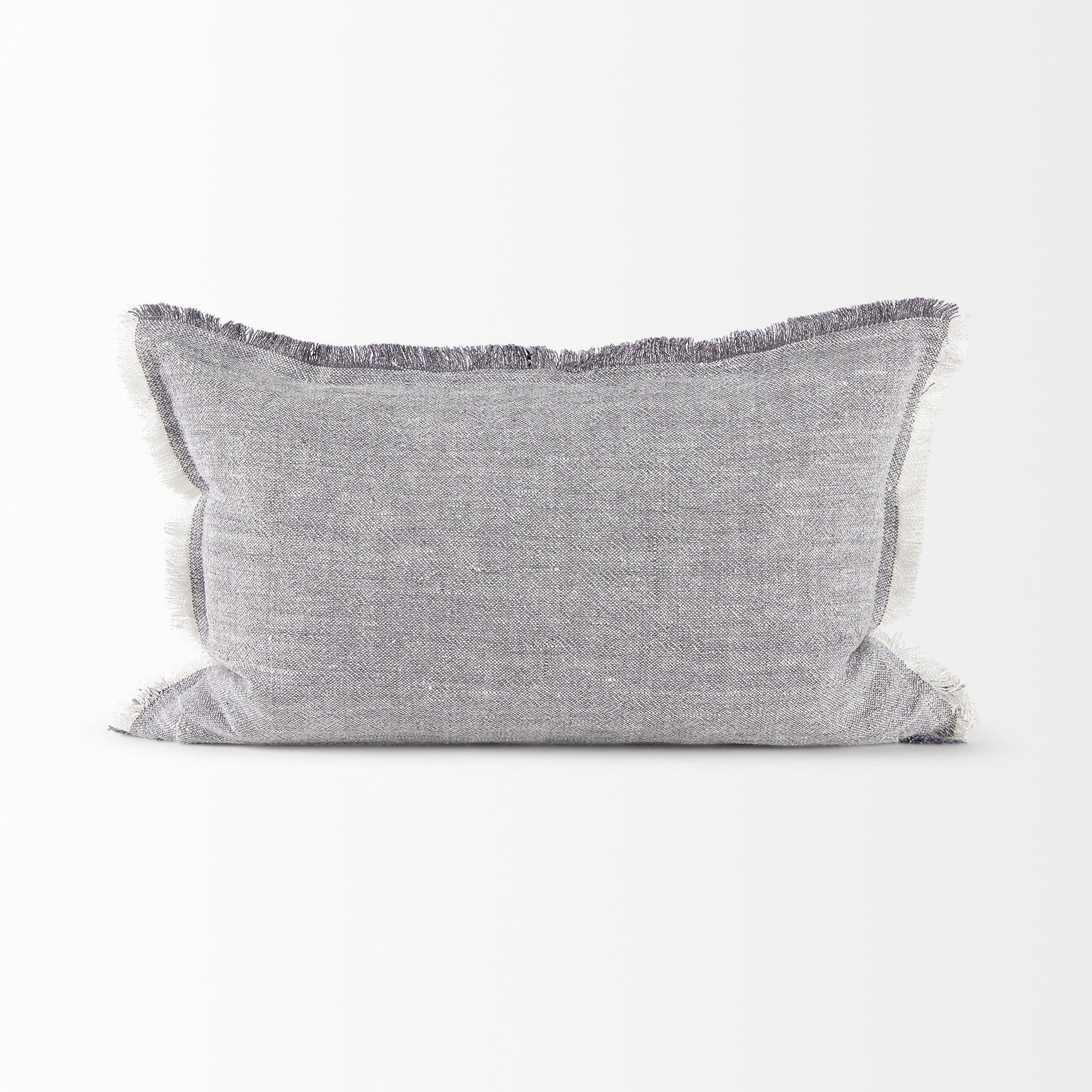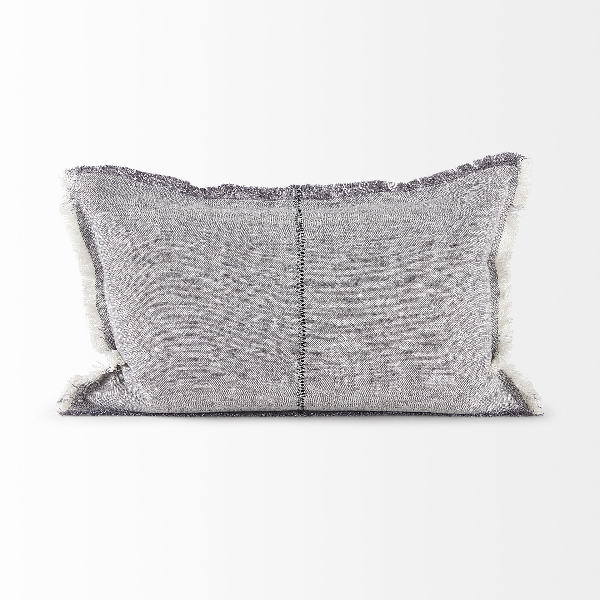 With this Light Gray Fringed Lumbar Throw Pillow Cover you can add the perfect finishing touch to your couch. This Throw Pillow Cover is made highly durable and soft linen material that provides comfort beyond measure. The light gray background of this Throw Pillow Cover has a stonewash feel to it. There is square stitched detail in the middle of this cover while all four edges have fringed detailing. The top and bottom have gray fringe while the sides have a white colored fringe. The back has a zip closure that ensures your cushion stays in there securely. The neutral color palette will look great on top of any couch, bed or chair you have and go with any interior style you have in your home. This Throw Pillow Cover is also great for extra back support. 13" H x 21" W x 1" D