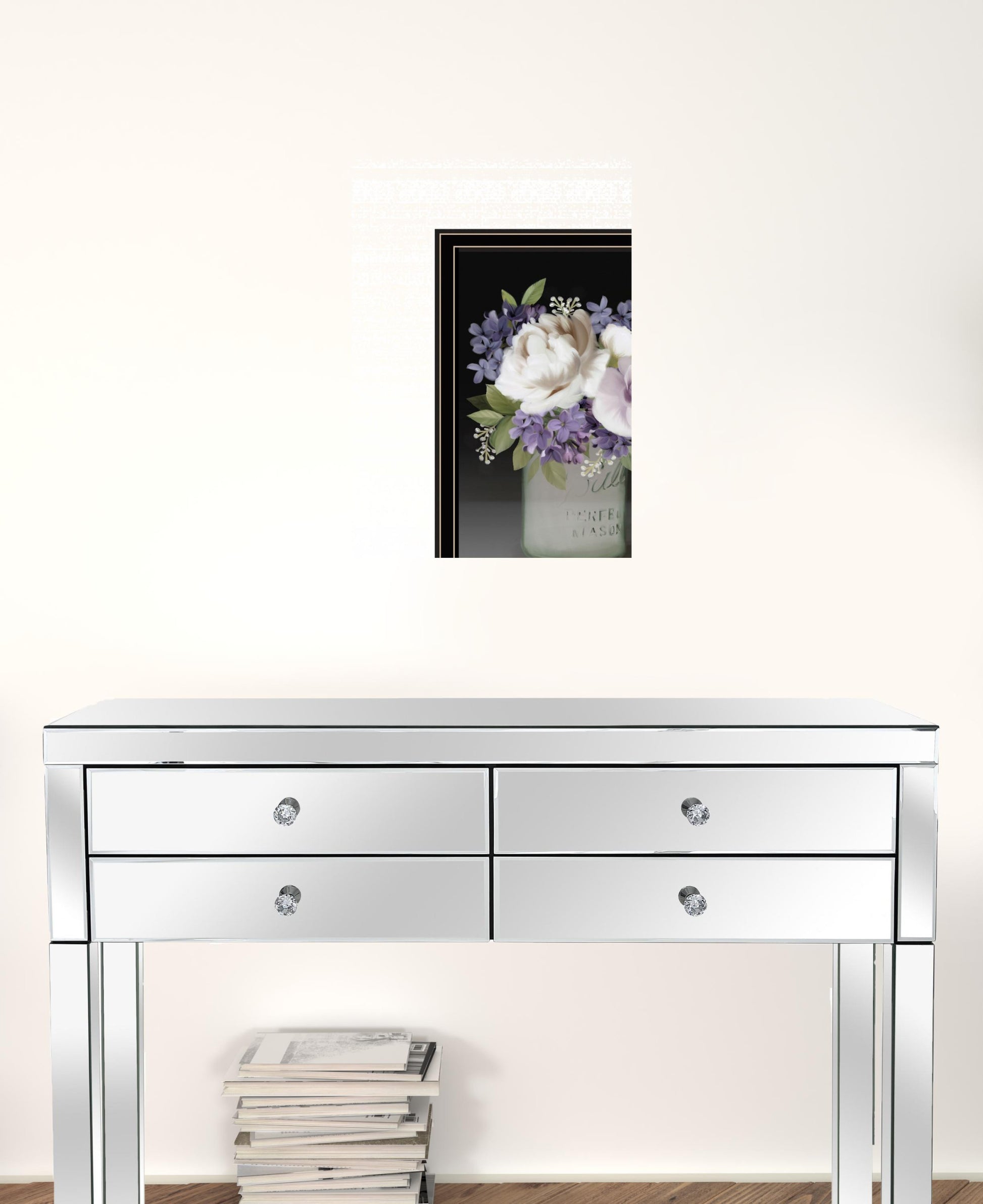 Add an air of fashion to your room and rejuvenate the space with this lilac mason jar floral 1 black framed print wall art. This print is a visual artistic expression that allows you to decorate your space in style. Reproduced for you on wood, this hanging decorative accent will be a trendy and fashionable way to dress your walls in a rustic and modern farmhouse vibe. Adding this hanging wall art to your space to make your room feel more finished and attractive. Utilize this opportunity to create a focal point in the room with this fabulous wall decor option. 20 inches H x 14 inches W x 1 inches D