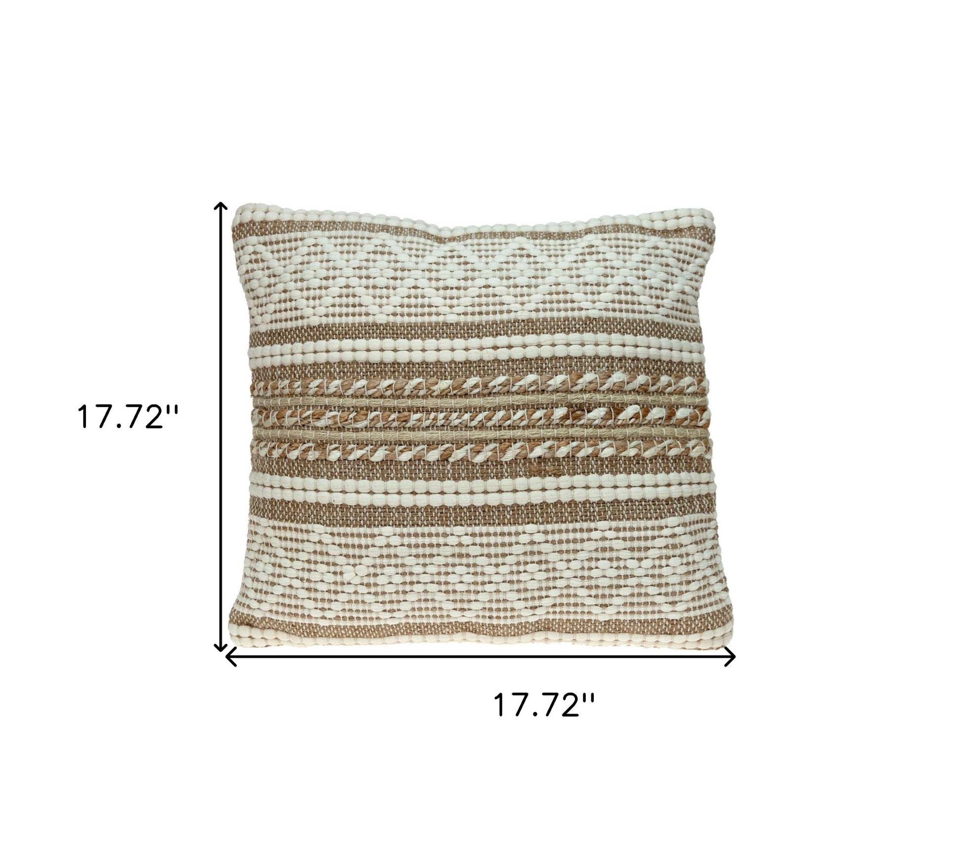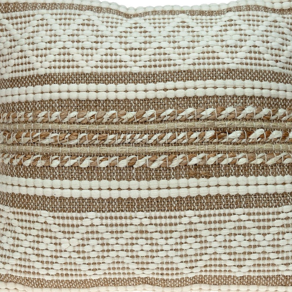 Add loads of texture to your simple and plain couch, bed, or chair by placing a few of the Linen and Brown Jute Throw Pillows. This pillow is 60% cotton and 40% jute, and has multiple lines and geometric patterns that look embossed, thanks to its hand woven design. The back of the pillow is solid and has a zipper closure, and the intricate details of the pillow require dry cleaning only. 17.72” x 17.72” x 4”