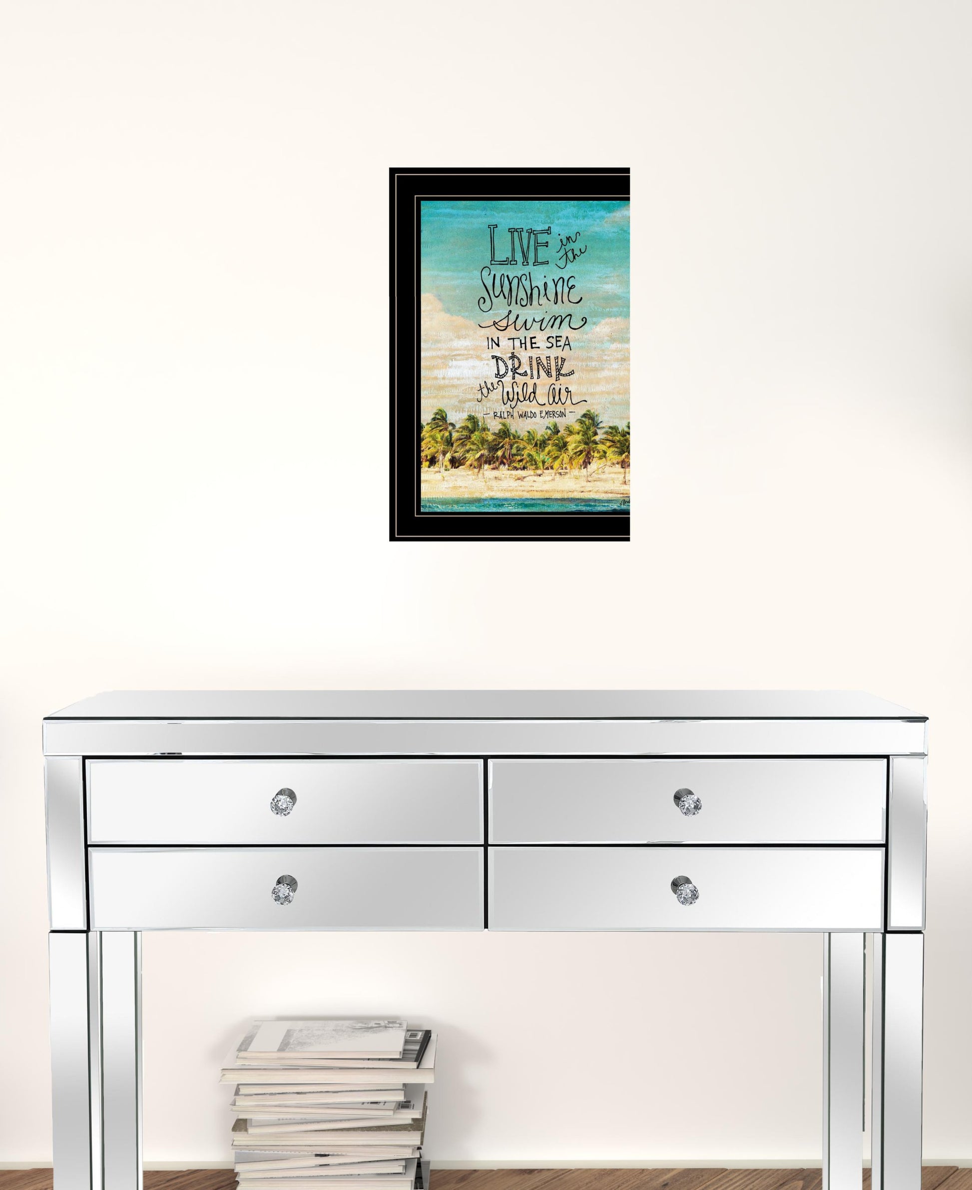 This live in the sunshine 3 black framed print wall art will add a beautiful decorative accent to your decor. This print is a visual artistic expression that allows you to decorate your space in style. Reproduced for you on paper, this hanging decorative accent will be a trendy and fashionable way to dress your walls. Hang on your wall to add some up to date fashion and decoration. Utilize this opportunity to create a focal point in the room with this fabulous wall decor option. 19 inches H x 15 inches W x 1 inches D