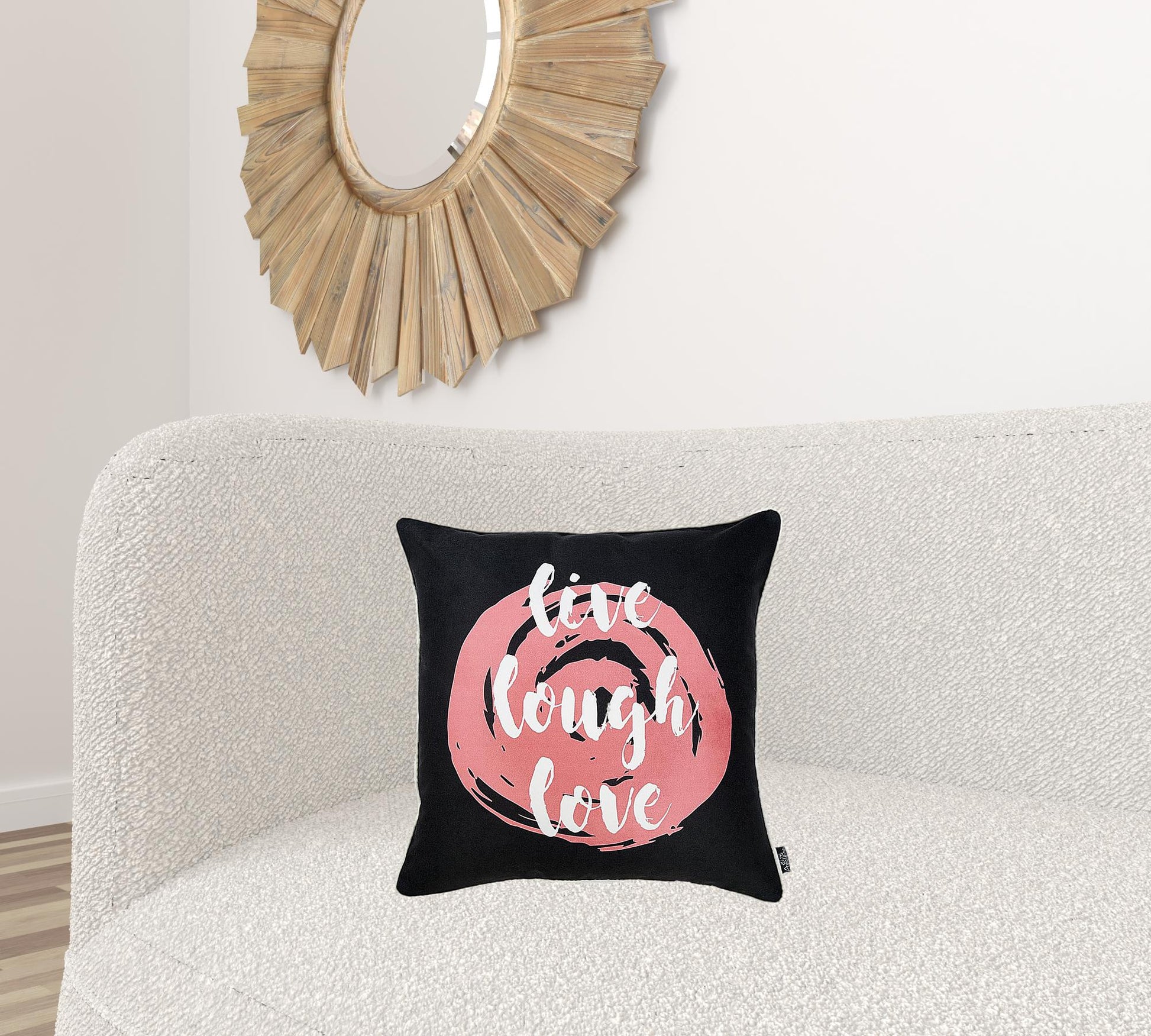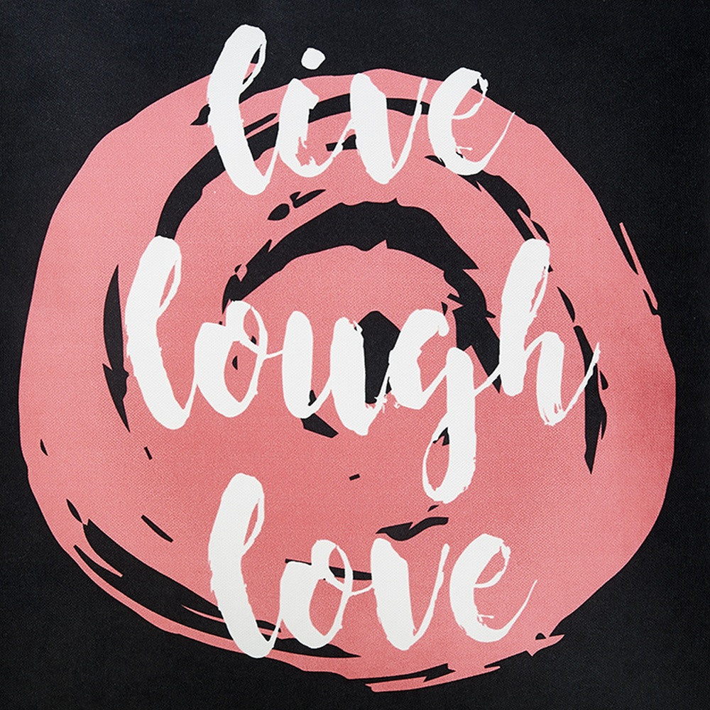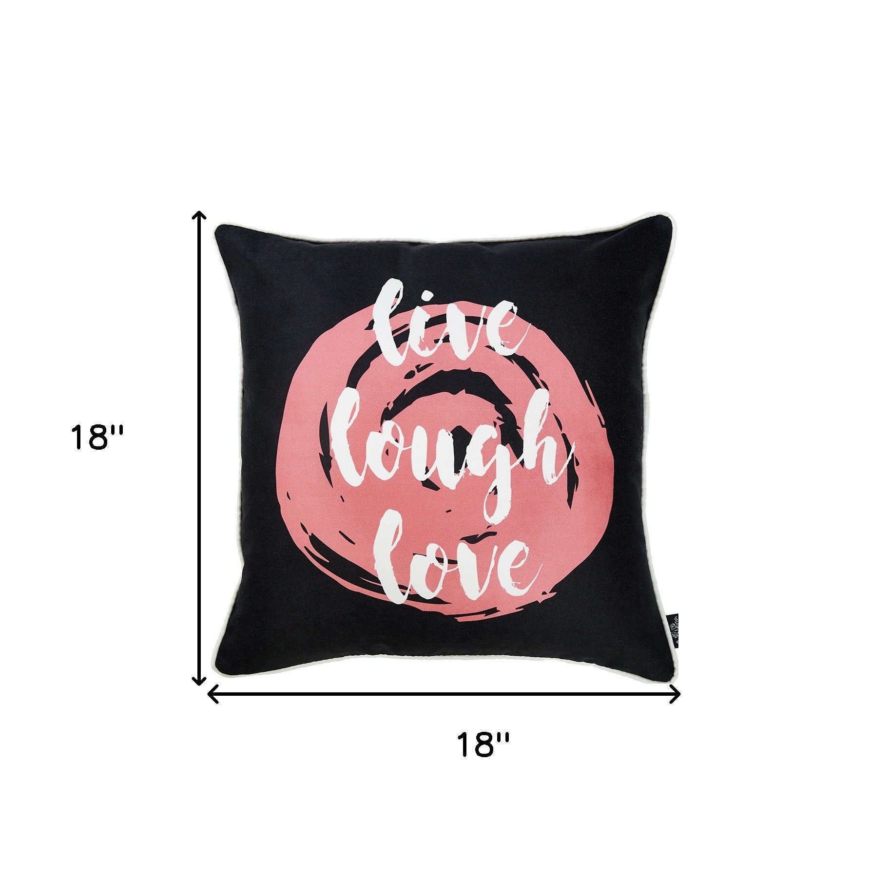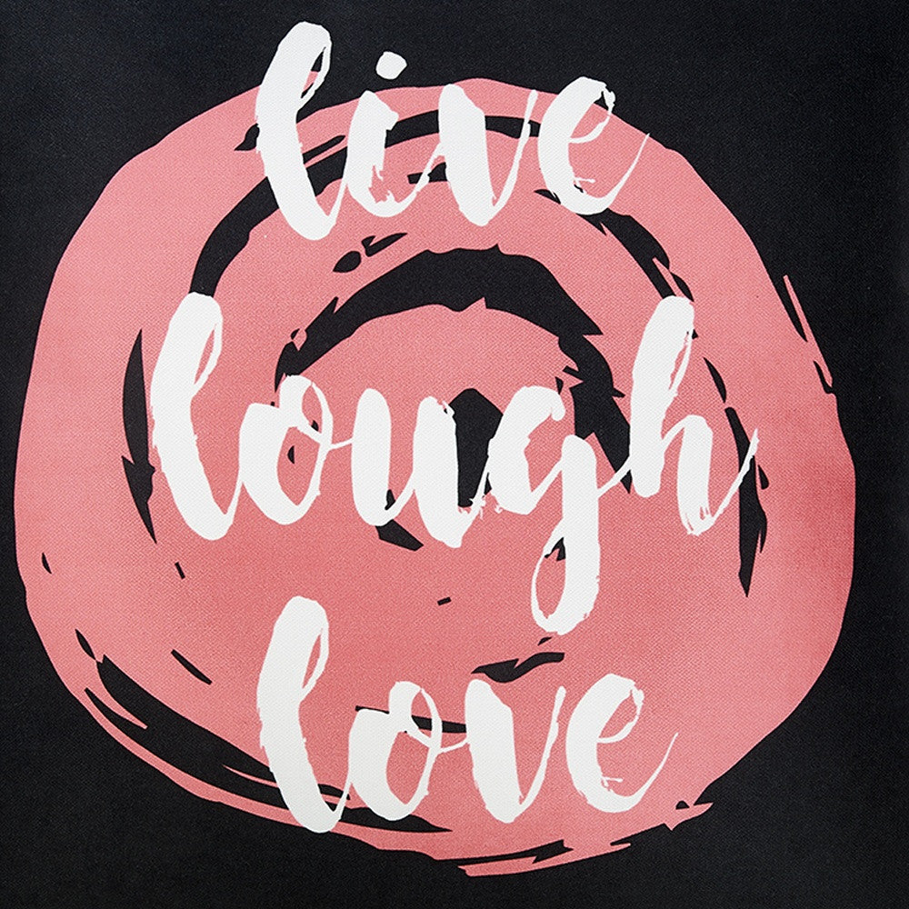 Easily update and refresh your home with this colorful Live Laugh Love Decorative Throw Pillow Cover. Instantly upgrade your space with this throw pillow cover made with luxurious brushed polyester fabric. The cheerful and colorful patterns will add hue and style to any room. The high quality digital print is in the front, and the back side is solid black. A hidden zipper closure provides a clean and seamless look all the way around. 18" X 18"