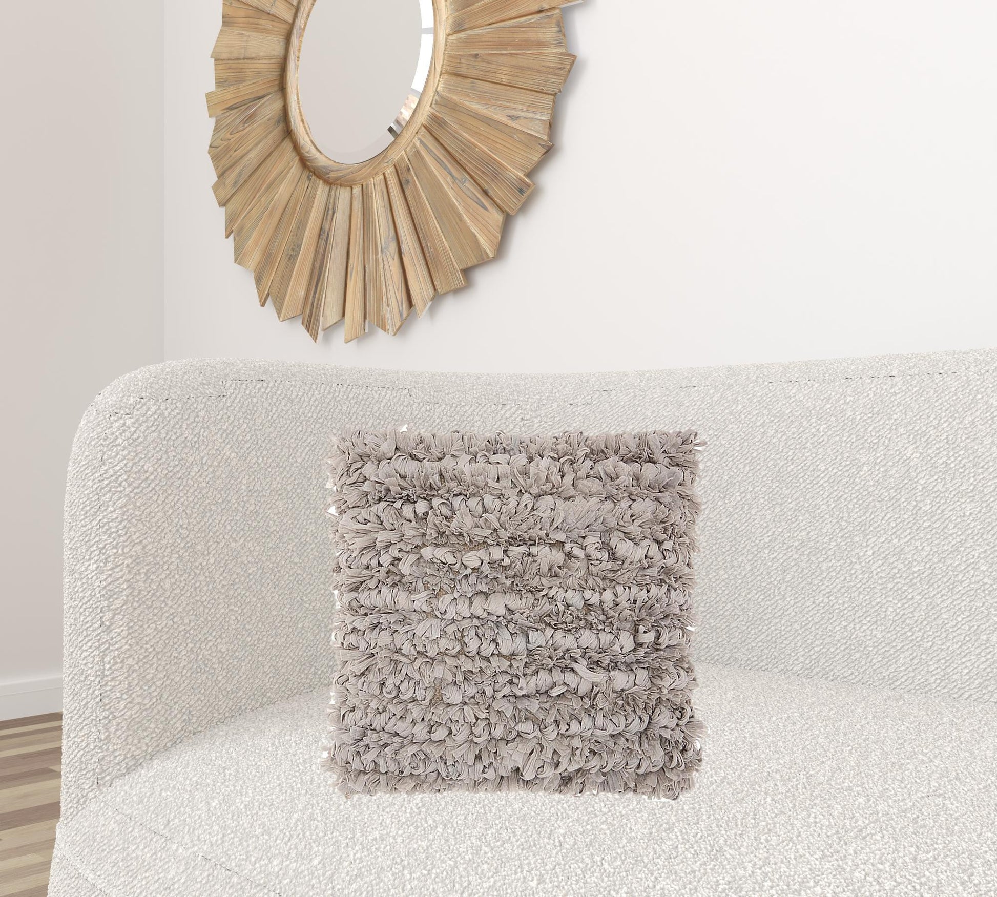 Add more comfort to your interior style with this Loose Luscious Shag Taupe Throw Pillow which is made to make you feel like you're sitting against a cloud. The throw pillow is covered in a shaggy fabric that has a more chunky weave to it and is in a an eye-pleasing taupe color. This throw pillow will look great in any room of your home, whether that is in the bedroom, the living room, or even as an accent piece on your favorite chair. 6" H x 20" W x 20" D