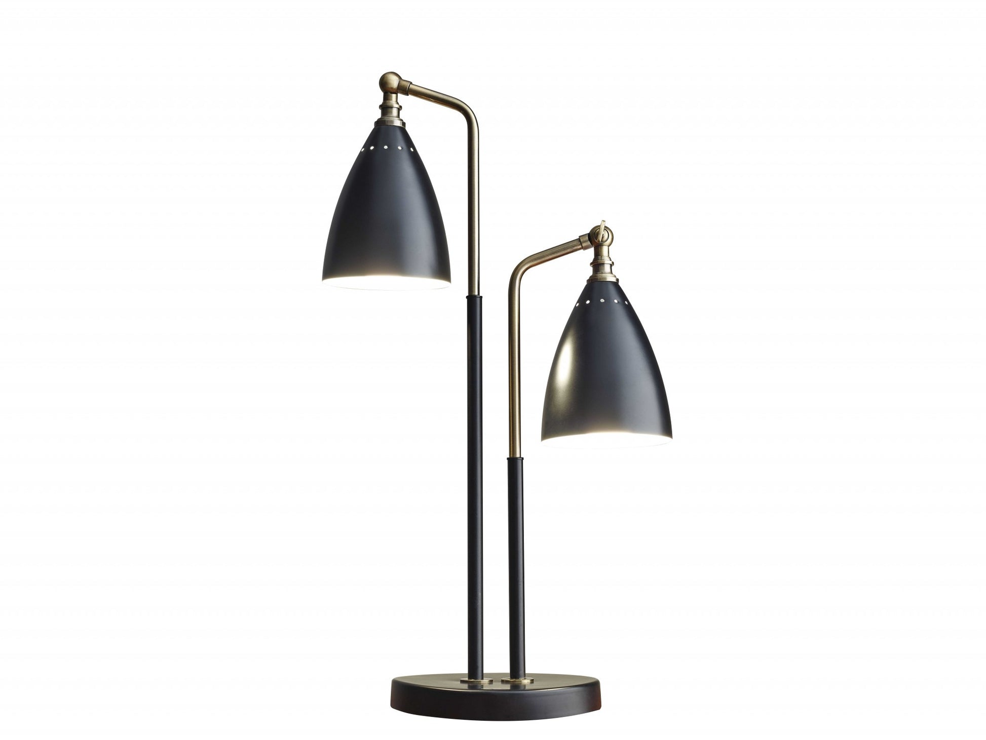 Matte Black Metal And Antique Brass Two Light Adjustable Table Lamp