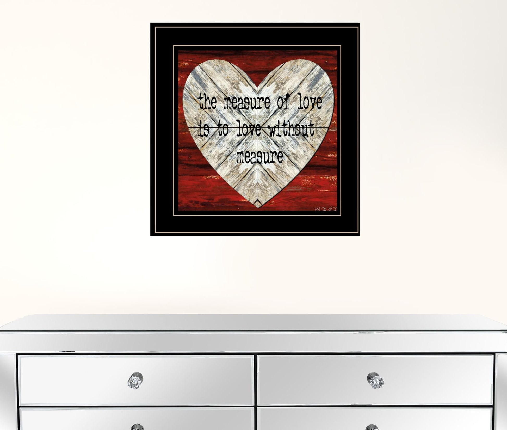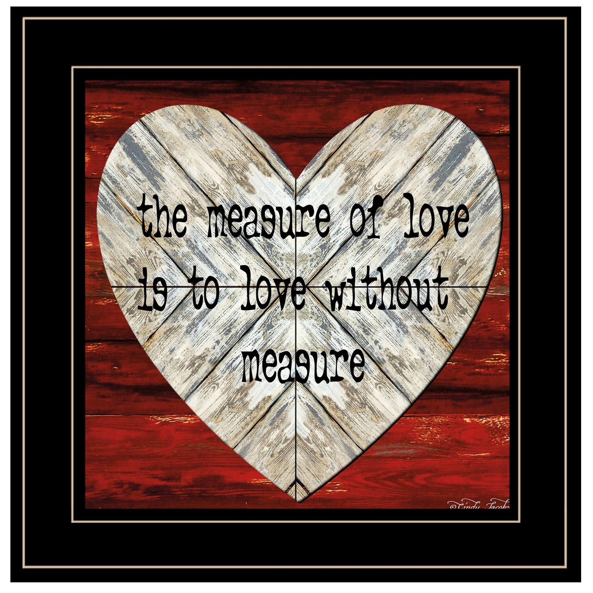 This measure of love 2 black framed print wall art will add a beautiful decorative accent to your decor. This print is a visual artistic expression that allows you to decorate your space in style. Reproduced for you on paper, this hanging decorative accent will be a trendy and fashionable way to dress your walls. Adding this hanging wall art to your space to make your room feel more finished and attractive. Instantly liven up your space with this art that brings color and dimension to your walls. 15 inches H x 15 inches W x 1 inches D