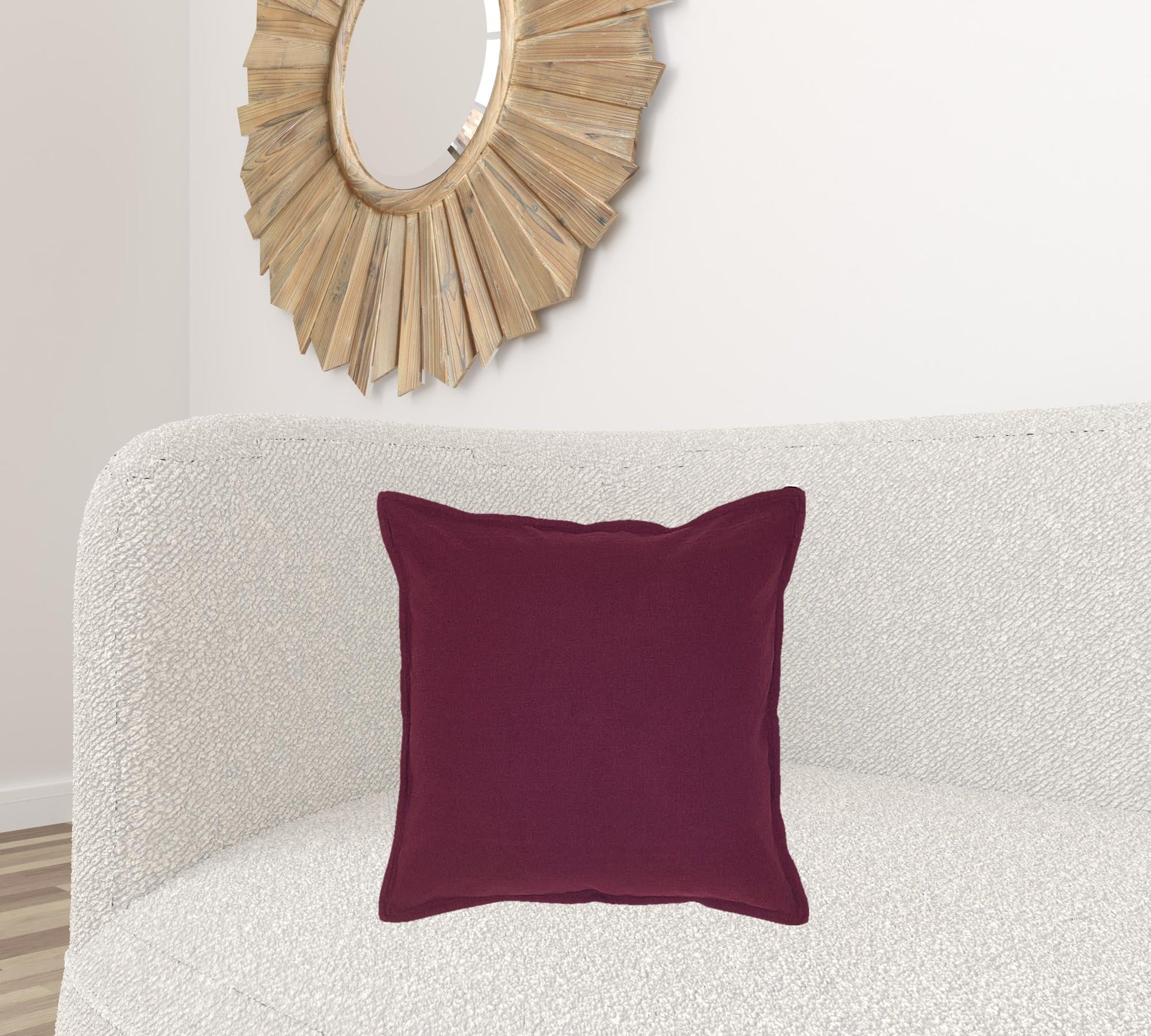 This Merlot Solid Flange Edged Modern Throw Pillow is a perfect accent to bring a minimalist style into your home with pops of colors in the room. Simple and modern in tones and texture, this pillow features a solid wine-colored base framed with a same-toned flange around the edges to give the piece a sophisticated and gorgeous appeal. Crafted with high-quality cotton slub fabric that has large and small denier yarns to ensure a linen like finish for a perfect balance of softness and durability. This poly filled pillow comes with a hidden zipper closure at the back that makes the pillow fill and clean with no sweat. Place this pillow with any neutral shades of decor and it will stand out in an instant giving your modern space a distinctive appearance. 20” x 20” x 6.25”