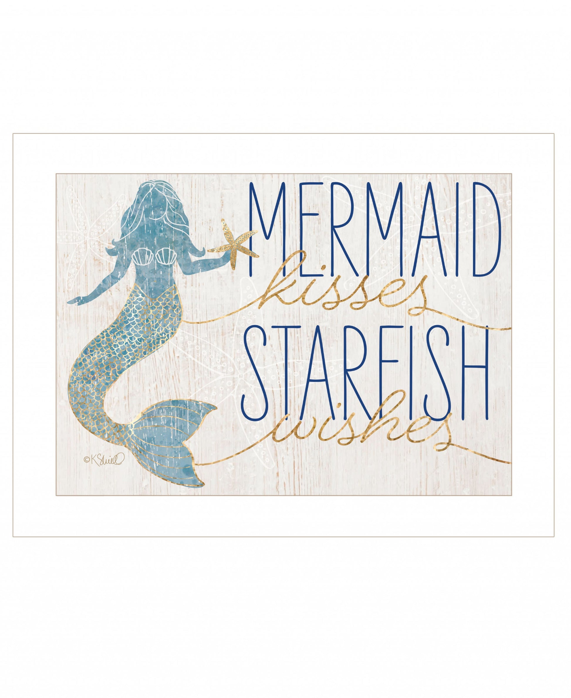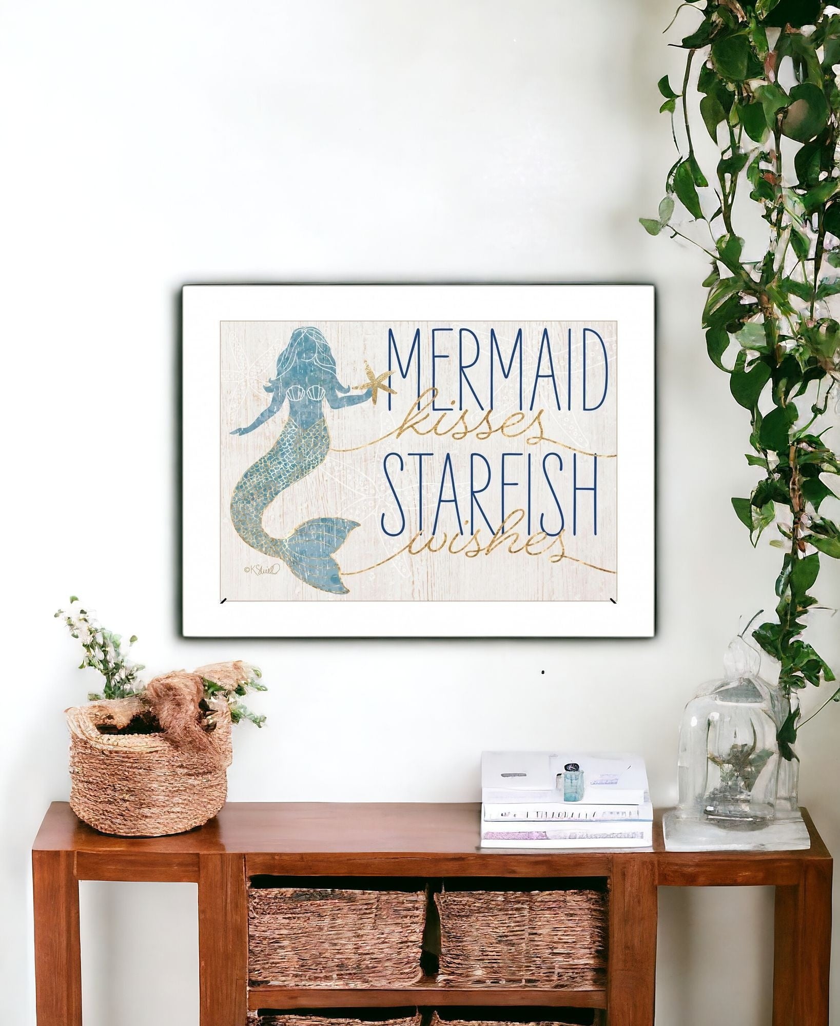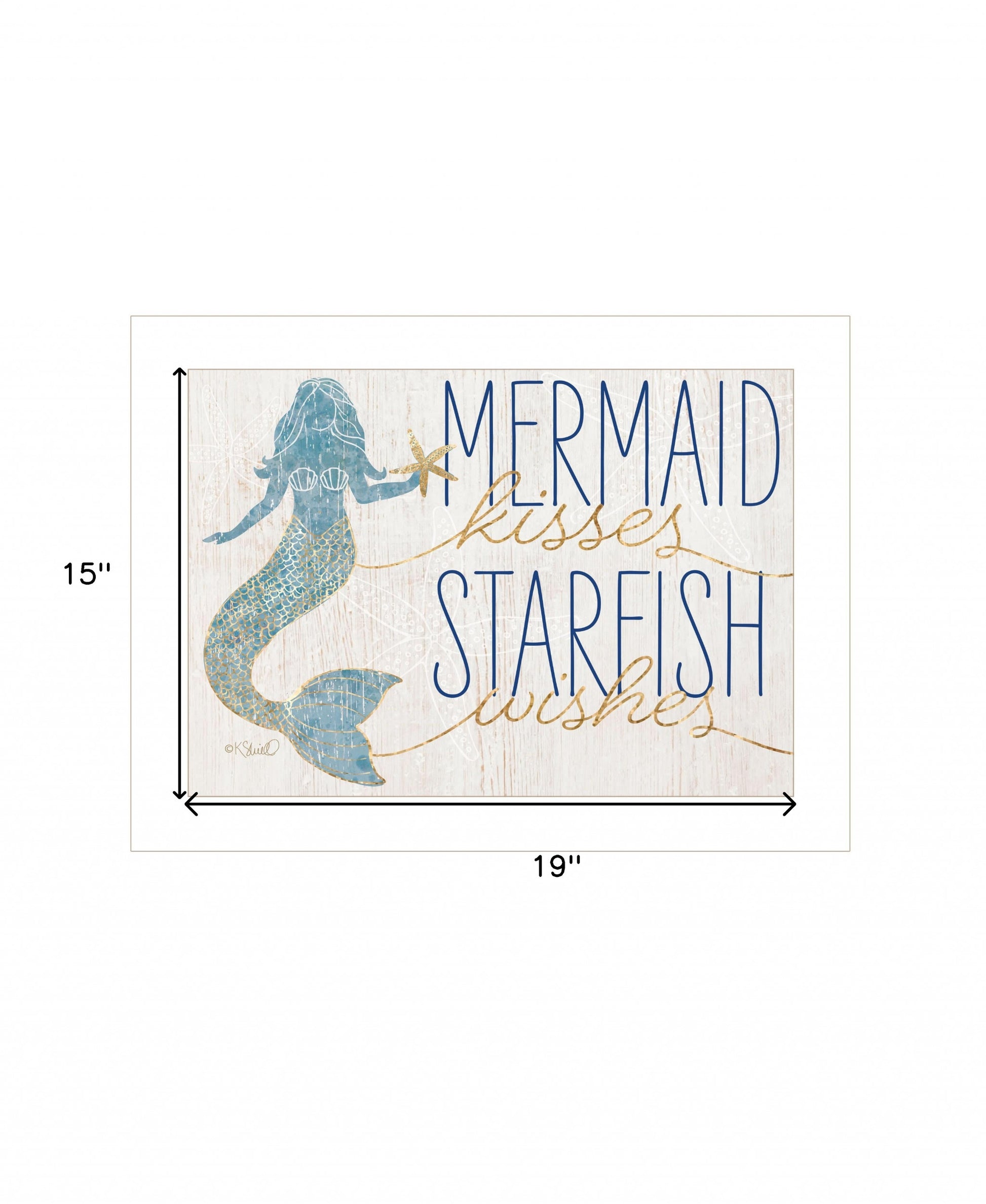 Add an air of fashion to your room and rejuvenate the space with this mermaid kisses starfish wishes 1 white framed print wall art. This print is a visual artistic expression that allows you to decorate your space in style. Reproduced for you on wood, this hanging decorative accent will be a trendy and fashionable way to dress your walls in a rustic and modern farmhouse vibe. Adding this hanging wall art to your space to make your room feel more finished and attractive. Instantly liven up your space with this art that brings color and dimension to your walls. 15 inches H x 19 inches W x 1 inches D