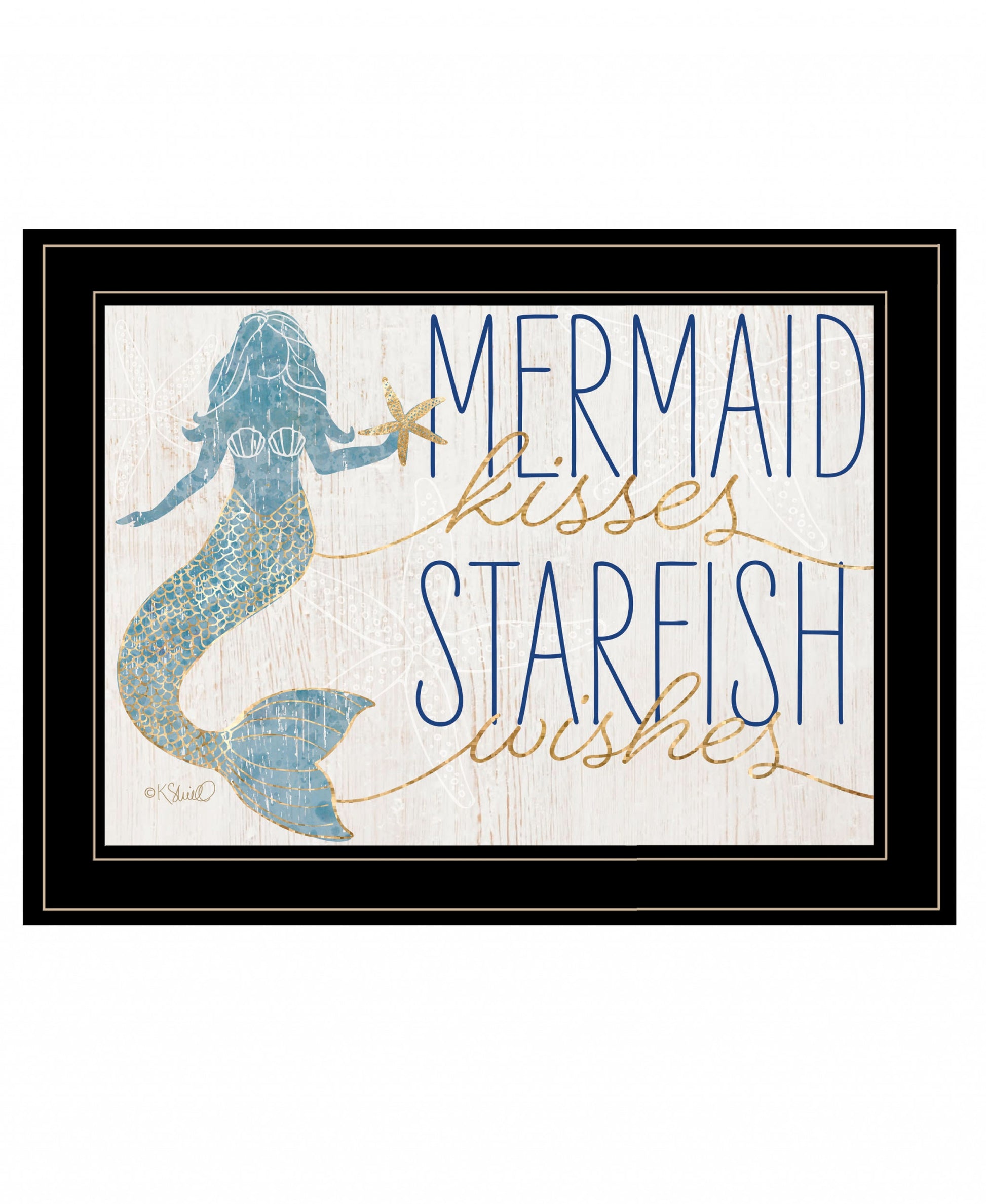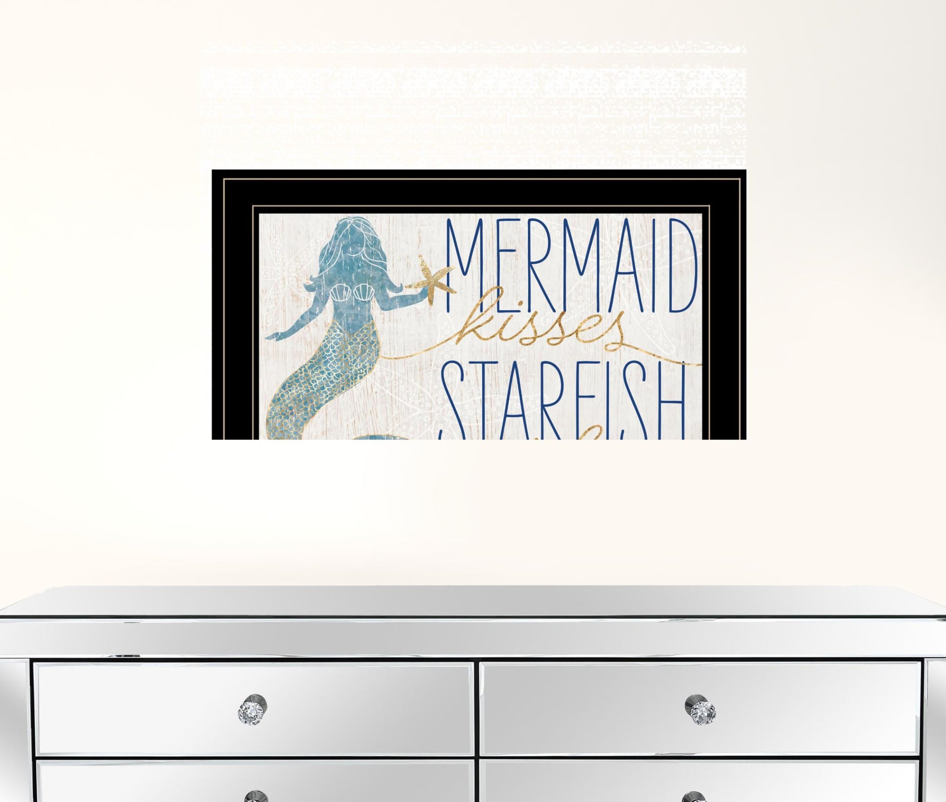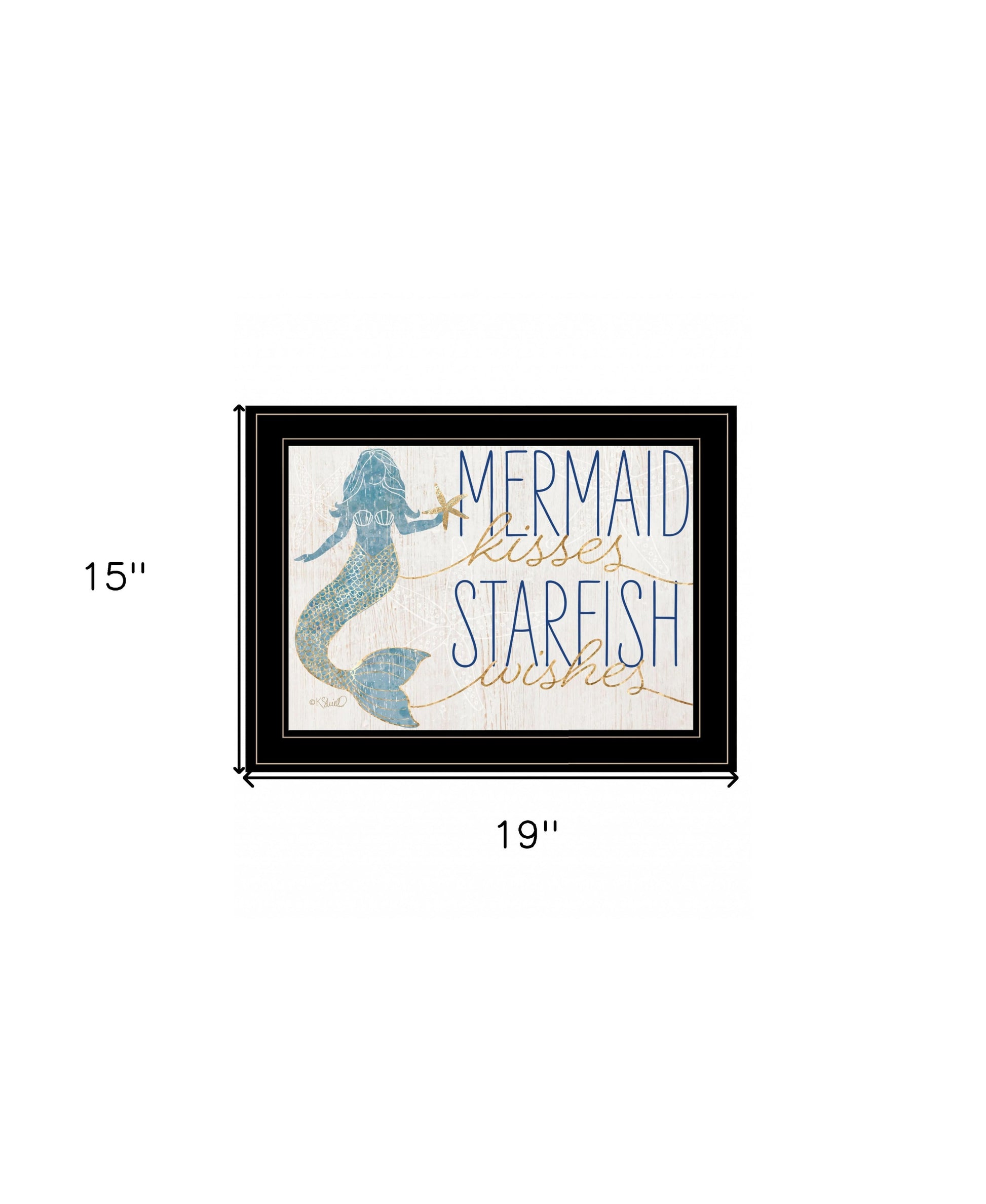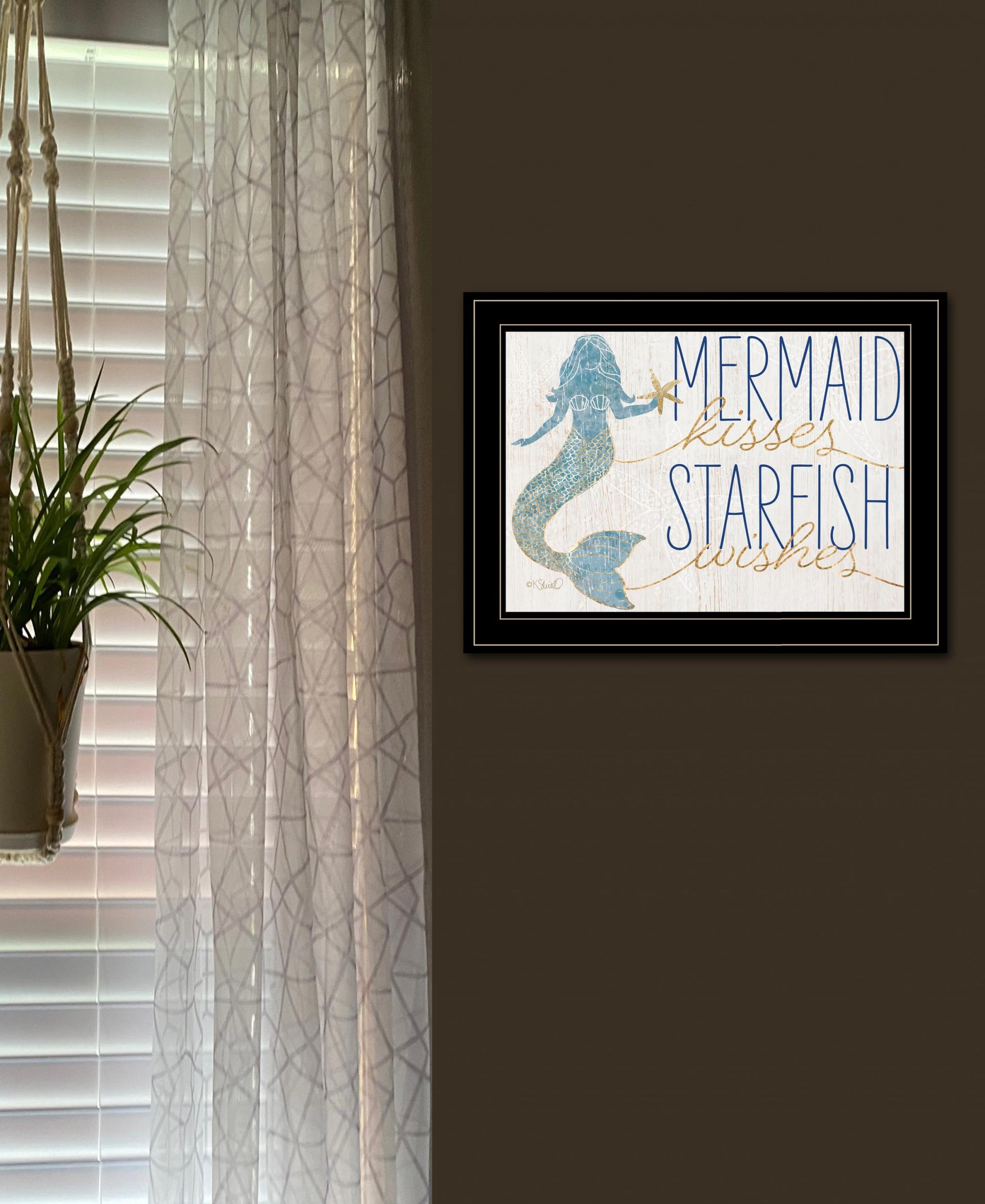 This mermaid kisses starfish wishes 3 black framed print wall art will add a beautiful decorative accent to your decor. This print is a visual artistic expression that allows you to decorate your space in style. Reproduced for you on wood, this hanging decorative accent will be a trendy and fashionable way to dress your walls in a rustic and modern farmhouse vibe. Adding this hanging wall art to your space to make your room feel more finished and attractive. Instantly liven up your space with this art that brings color and dimension to your walls. 15 inches H x 19 inches W x 1 inches D