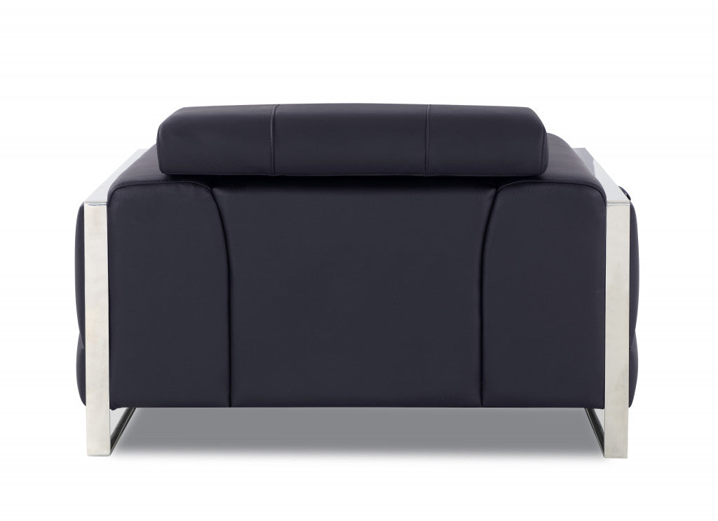 Take your style game to the next level with this Mod Black Leather and Chrome Deco Accent Chair. This striking and glamorous chair is upholsterd in super soft genuine Italian leather. Geometric shapes, stark chrome tubular arm trim, and outside tufting bring a unique contemporary flair. Made of a high quality wood frame and some of the world's finest leather, this chair is a contemporary designer's dream. Designed to not only look bold and incredible, this chair provides maximum quality and comfort. 35 x 48 x 43