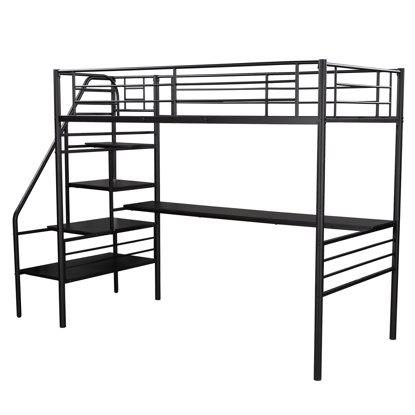 Mod Black Twin Size Metal Loft Bed with Desk and Stairs