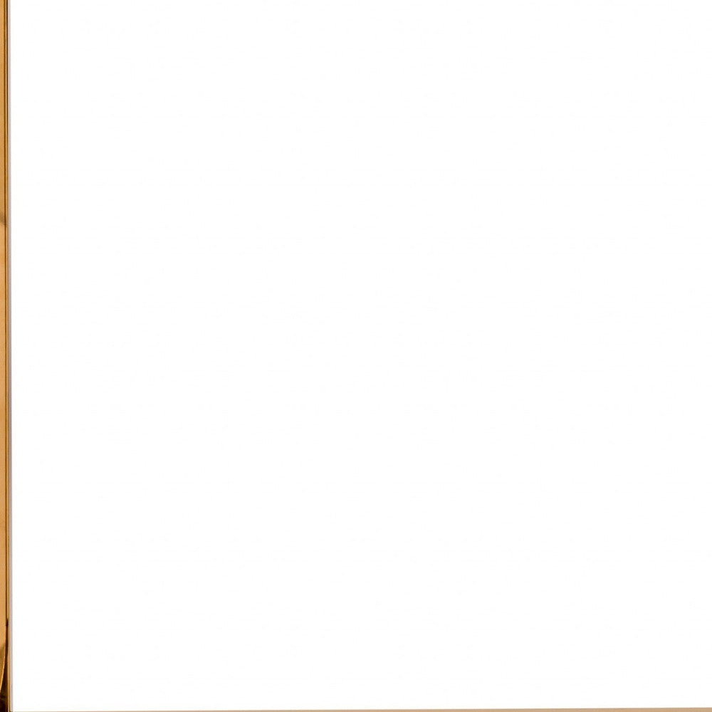 A stunning neutral yet versatile piece, this Modern White Gloss and Chrome Console Table will elevate the look of any space in your home. The base of this side table is made from solid steel in a warm and rich gold finish. The base has a simple minimalist design rectangle with a rectangular sturdy and simple mdf tabletop placed on it. The white high gloss rectangle top looks great against the golden frame and adds a touch of class to the overall look of this table. The neutral look of this table allows you to use it with any color scheme you may already have in your home. You can use this side table in your entryway, office, behind your sofa, in your bedroom, or even in dining room as a bar or for serving in style. 29.93" H x 35.44" W x 9.85" D