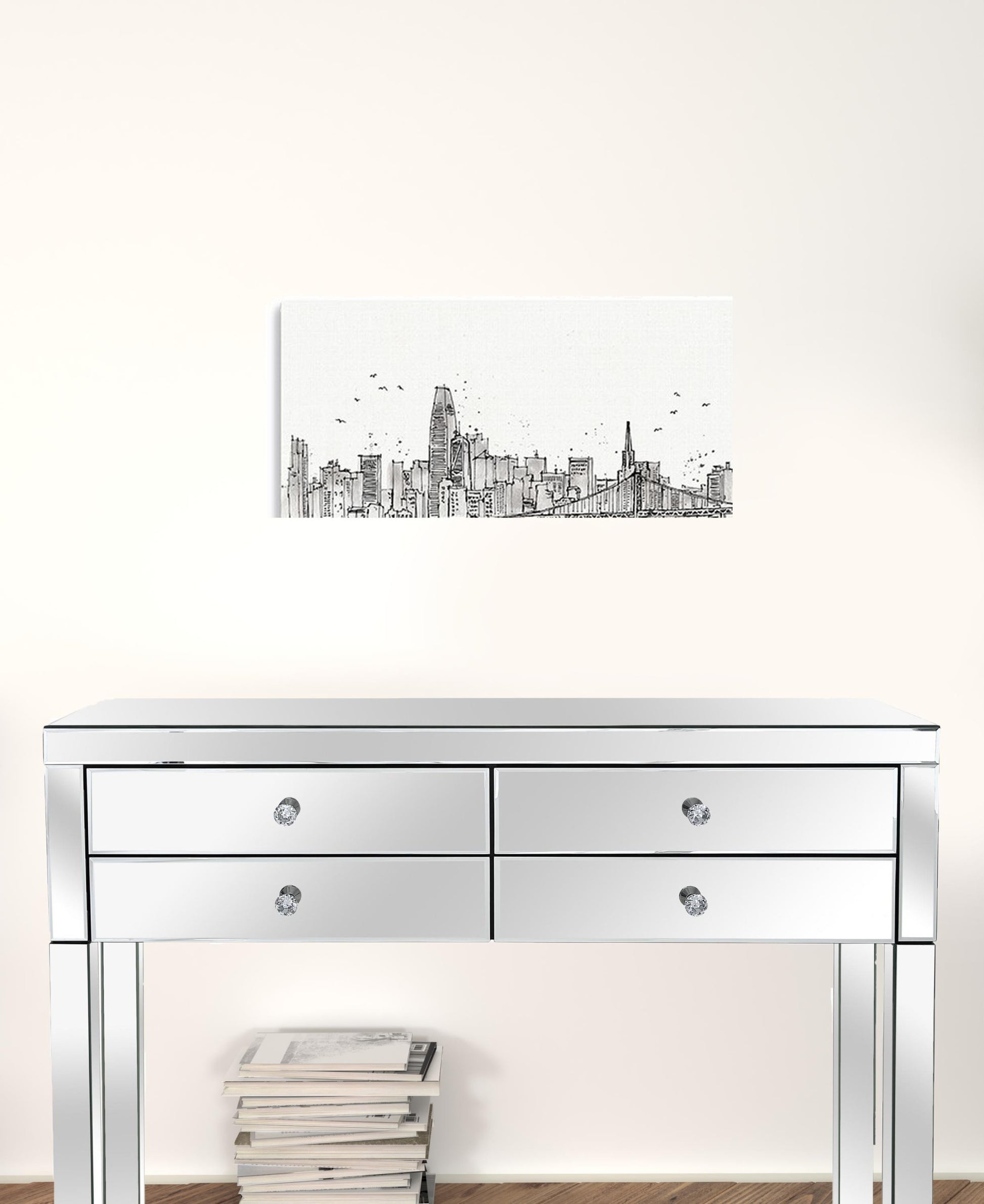 Bring some sizzle to your space with this eye-catching monochrome city skyline sketch unframed print wall art. This print is a visual artistic expression that allows you to decorate your space in style. Reproduced for you on canvas, this hanging decorative accent will be a trendy and fashionable way to dress your walls. Hang on your wall to add some up to date fashion and decoration. Instantly liven up your space with this art that brings color and dimension to your walls. 24 inches H x 16 inches W x 1.25 inches D