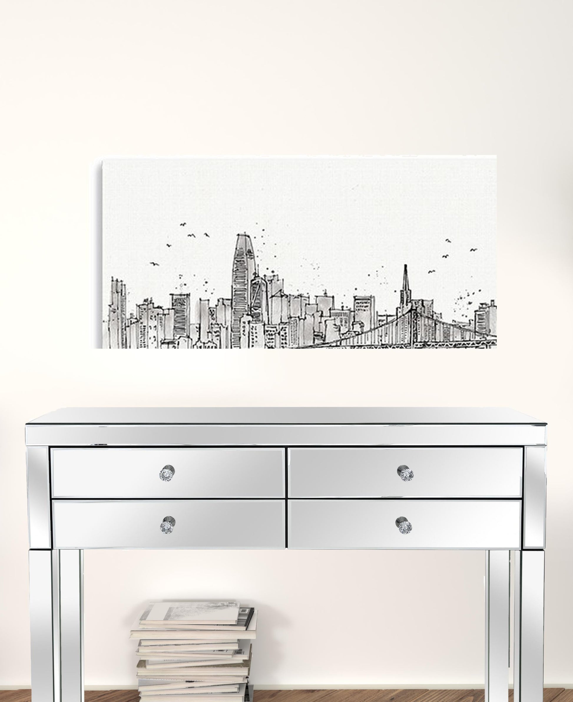 Add an air of fashion to your room and rejuvenate the space with this monochrome city skyline sketch unframed print wall art. This print is a visual artistic expression that allows you to decorate your space in style. Reproduced for you on canvas, this hanging decorative accent will be a trendy and fashionable way to dress your walls. Hang on your wall to add some up to date fashion and decoration. Instantly liven up your space with this art that brings color and dimension to your walls. 36 inches H x 24 inches W x 1.25 inches D