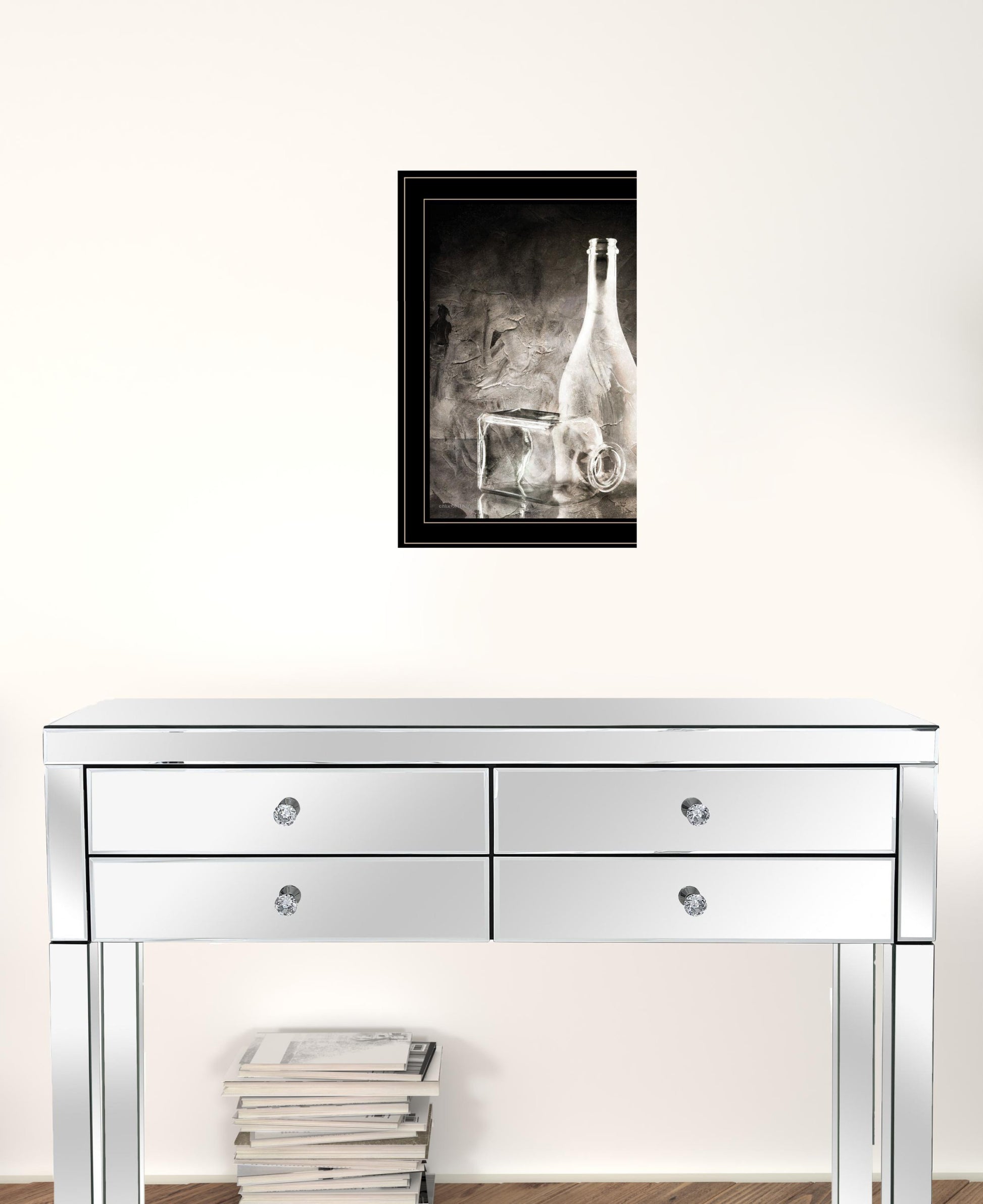 Unique and decorative, this moody gray glassware still life 3 black framed print wall art will leave a lasting impression. This print is a visual artistic expression that allows you to decorate your space in style. Reproduced for you on paper, this hanging decorative accent will be a trendy and fashionable way to dress your walls. Hang on your wall to add some up to date fashion and decoration. Utilize this opportunity to create a focal point in the room with this fabulous wall decor option. 19 inches H x 15 inches W x 1 inches D