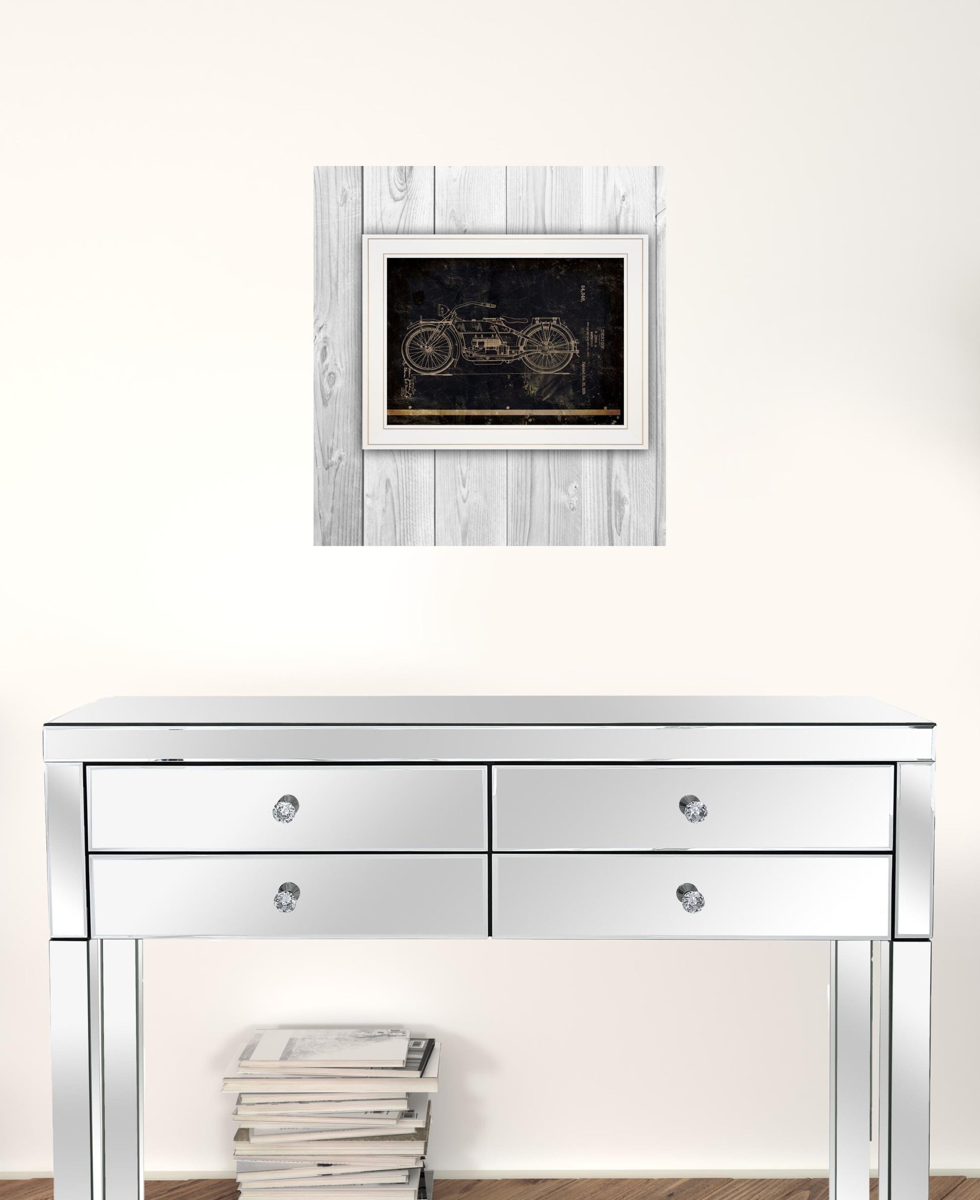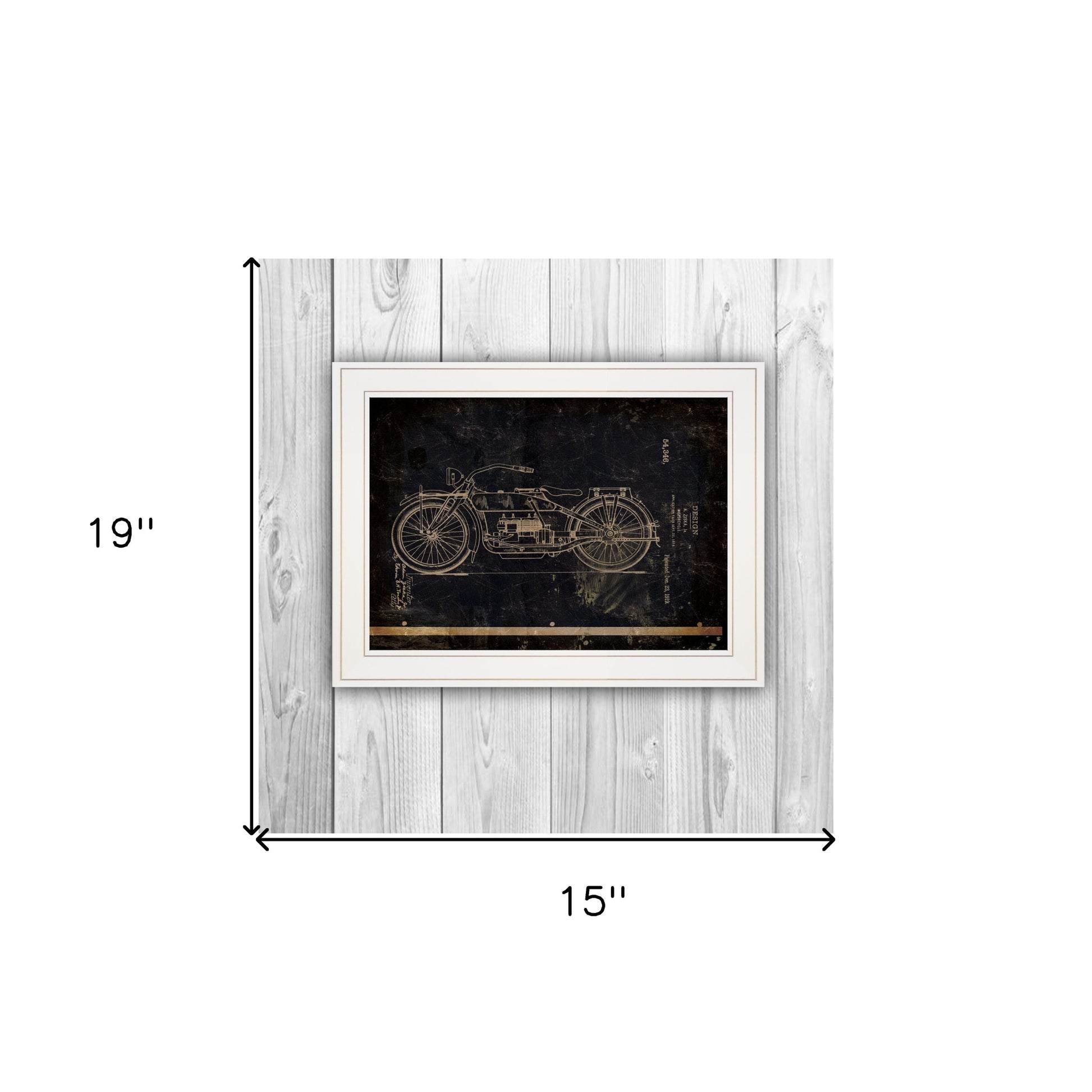 The motor bike patent I 1 white framed print wall art is the perfect decorative accessory for your home. This transportation inspired wall art features a motor bike icon and will bring a refreshing look and perspective to your walls. This print is a visual artistic expression that allows you to decorate your space in style. Reproduced for you on paper, this hanging decorative accent will be a trendy and fashionable way to dress your walls. Hang on your wall to add some up to date fashion and decoration. Instantly liven up your space with this art that brings color and dimension to your walls. 19 inches H x 15 inches W x 1 inches D