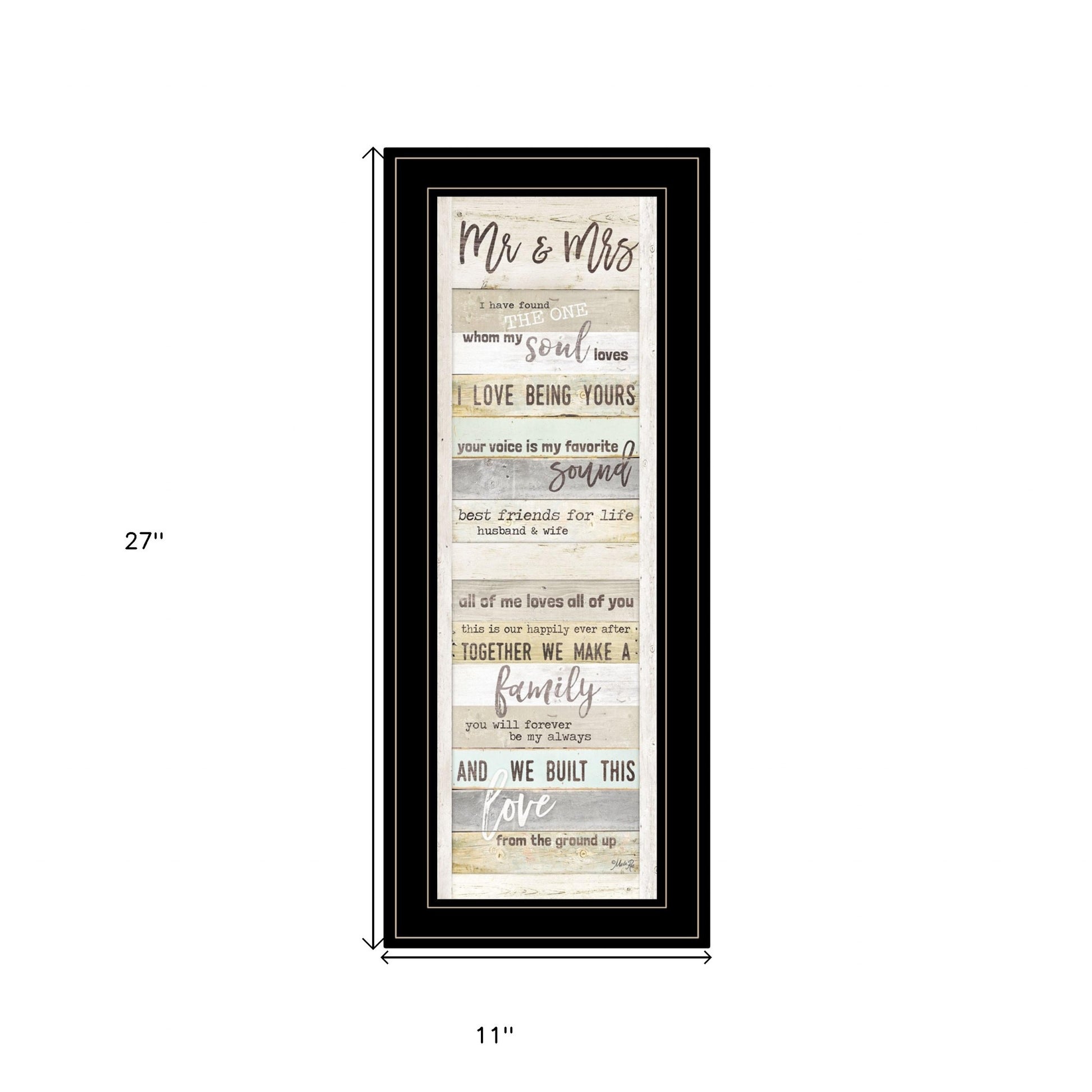 This mr and mrs 1 black framed print wall art will add a beautiful decorative accent to your decor. This print is a visual artistic expression that allows you to decorate your space in style. Reproduced for you on paper, this hanging decorative accent will be a trendy and fashionable way to dress your walls. Adding this hanging wall art to your space to make your room feel more finished and attractive. Utilize this opportunity to create a focal point in the room with this fabulous wall decor option. 27 inches H x 11 inches W x 1 inches D