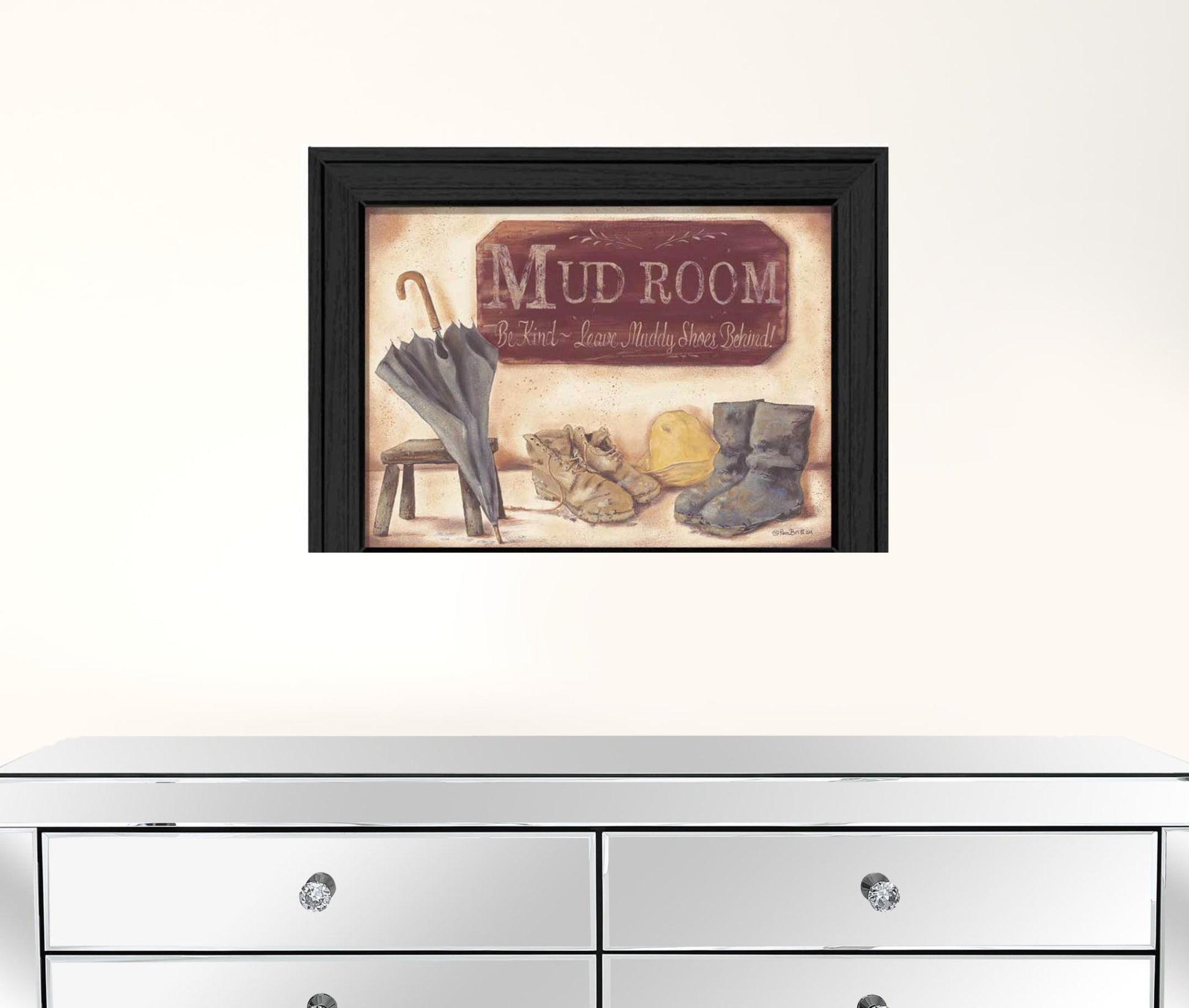 Add an air of fashion to your room and rejuvenate the space with this muddy shoes black framed print mud room wall art. This print is a visual artistic expression that allows you to decorate your space in style. Reproduced for you on paper, this hanging decorative accent will be a trendy and fashionable way to dress your walls. Adding this hanging wall art to your space to make your room feel more finished and attractive. Instantly liven up your space with this art that brings color and dimension to your walls. 18 inches H x 14 inches W x 1 inches D