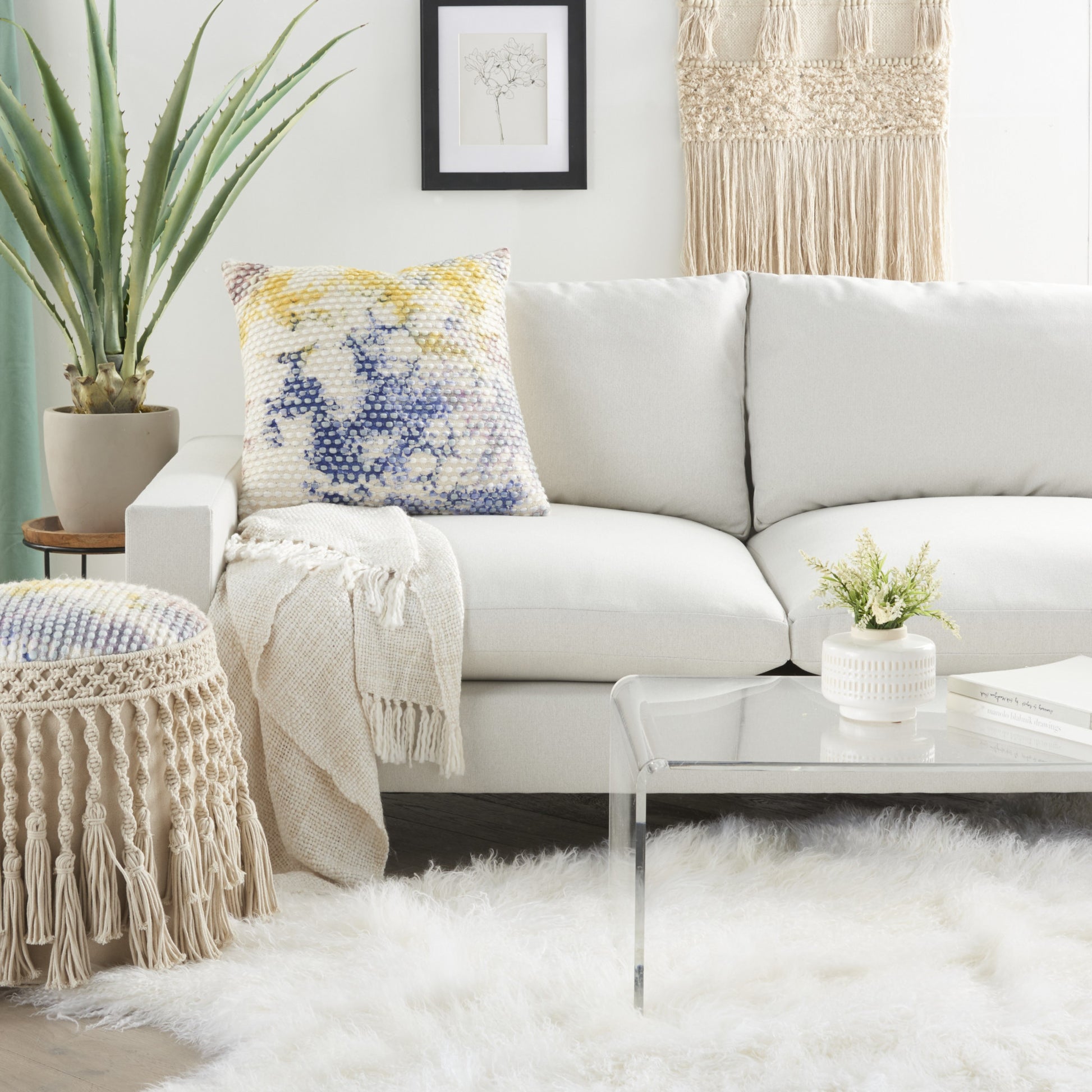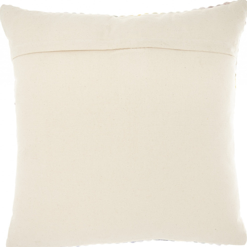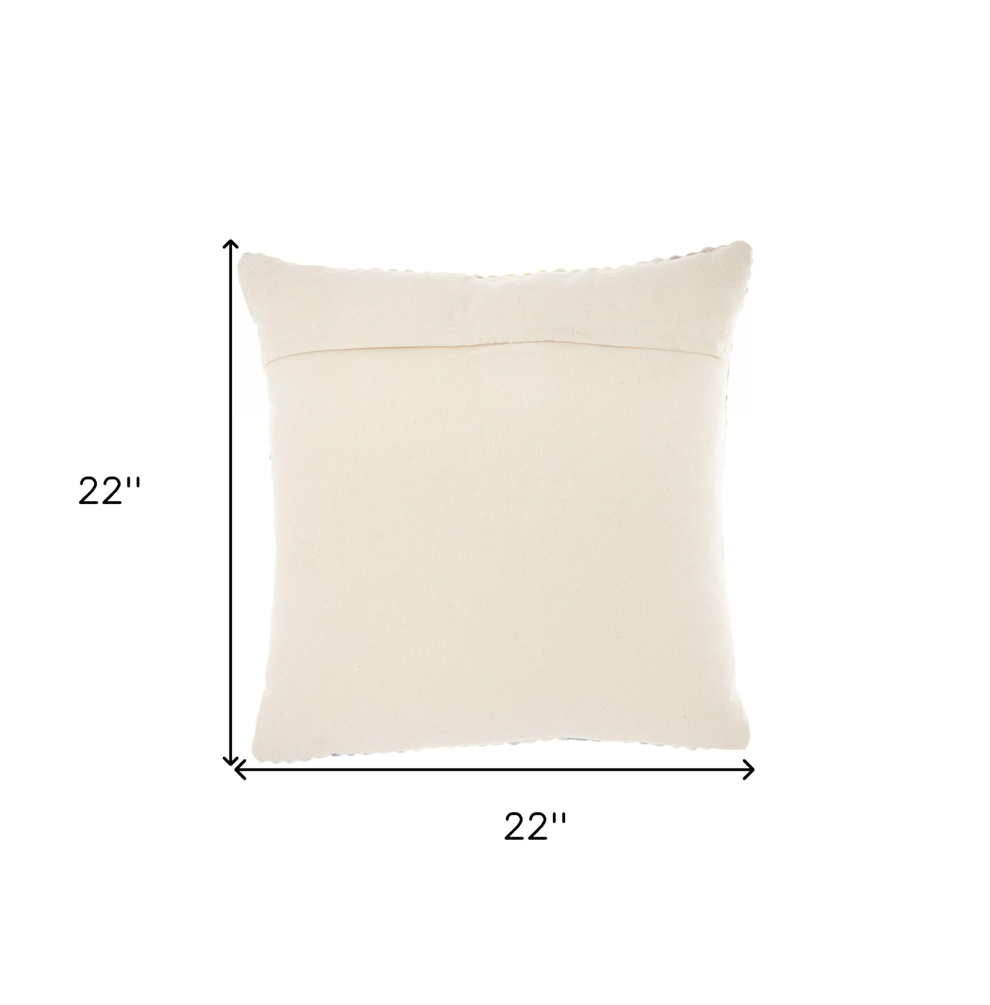 Add a pop of color and interest to your home with this Multi Color Cotton Acryllic Accent Throw Pillow. The experly handcrafted colorful pillow provides a uniqueness and extra style to your bed or sofa setup. The fun pops of yellow, blue and pinks makes this pillow perfect for any interior in need of a subtle pop of color and chicness! 5" x 22" x 22"