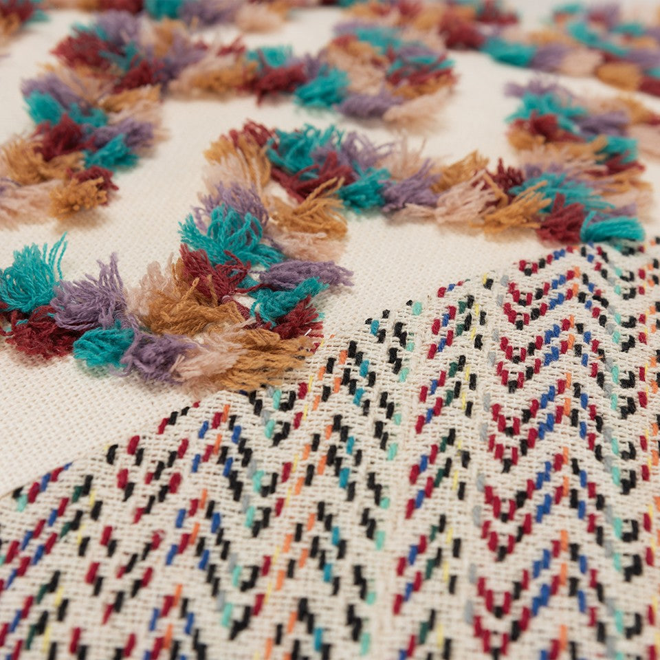 Colorful and dramatic, this vibrantly woven Multicolored Chevron Diagonal Panel Throw Pillow is sure to bring a glamorous style with a traditional essence to your home. Laden with unique elements, the color blocking of the pillow features chevron multicolor prints diagonally on either side with a center chevron weave using colorful threads in a boho style. Constructed with a soft cotton fabric, the back of the pillow is solid with a hidden zipper closure for ease of cleaning. The pillow comes with a polyfill insert to provide maximum comfort and fluffiness that promotes good posture. Emphasize the traditional aspects of your home with the addition of this vibrant throw pillow that will induce a bohemian vibe. 20" x 20" x 6.25”