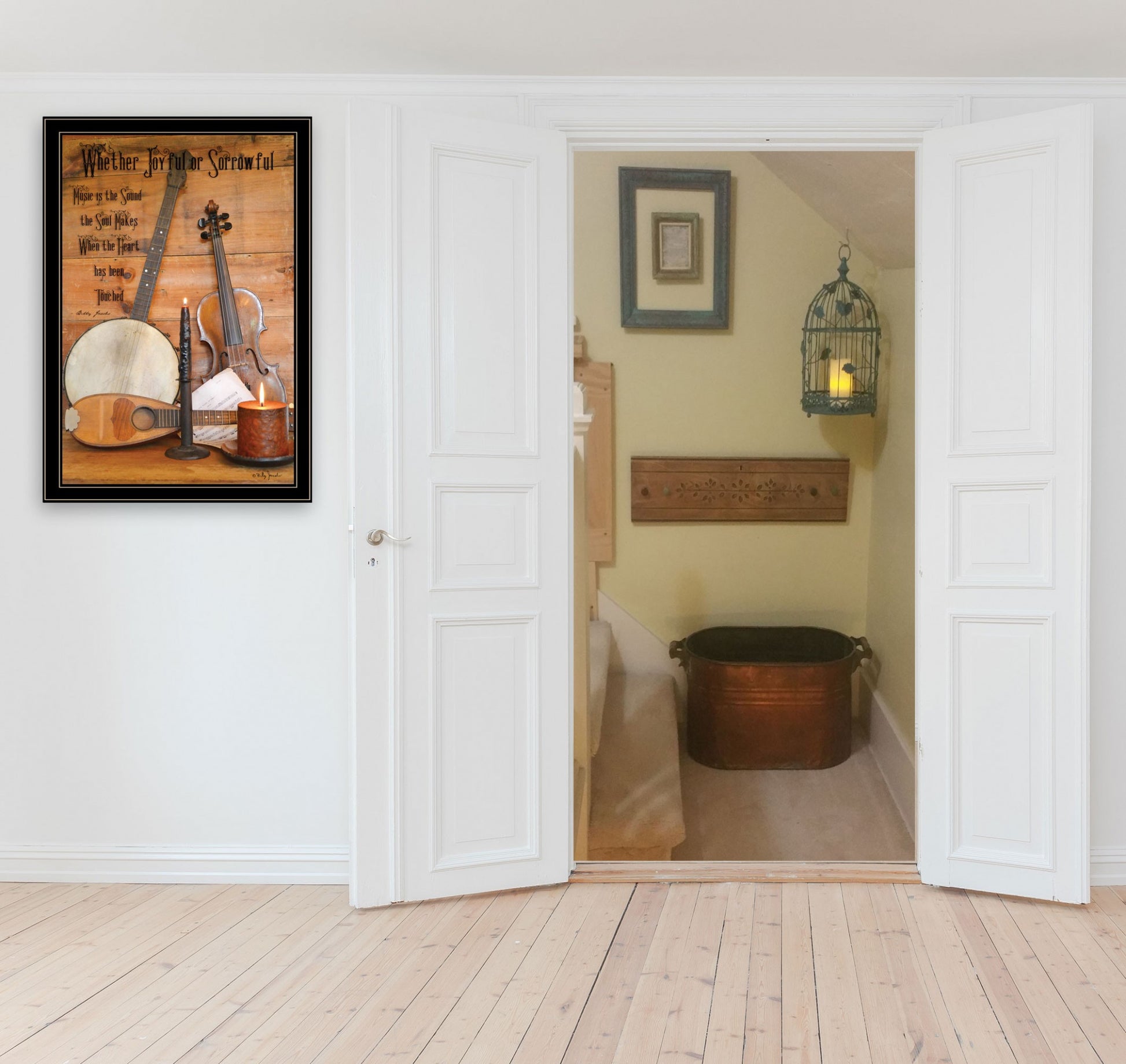 Unique and decorative, this music is the sound of the soul black framed print wall art will leave a lasting impression. This print is a visual artistic expression that allows you to decorate your space in style. Reproduced for you on paper, this hanging decorative accent will be a trendy and fashionable way to dress your walls. Adding this hanging wall art to your space to make your room feel more finished and attractive. Instantly liven up your space with this art that brings color and dimension to your walls. 33 inches H x 23 inches W x 1 inches D