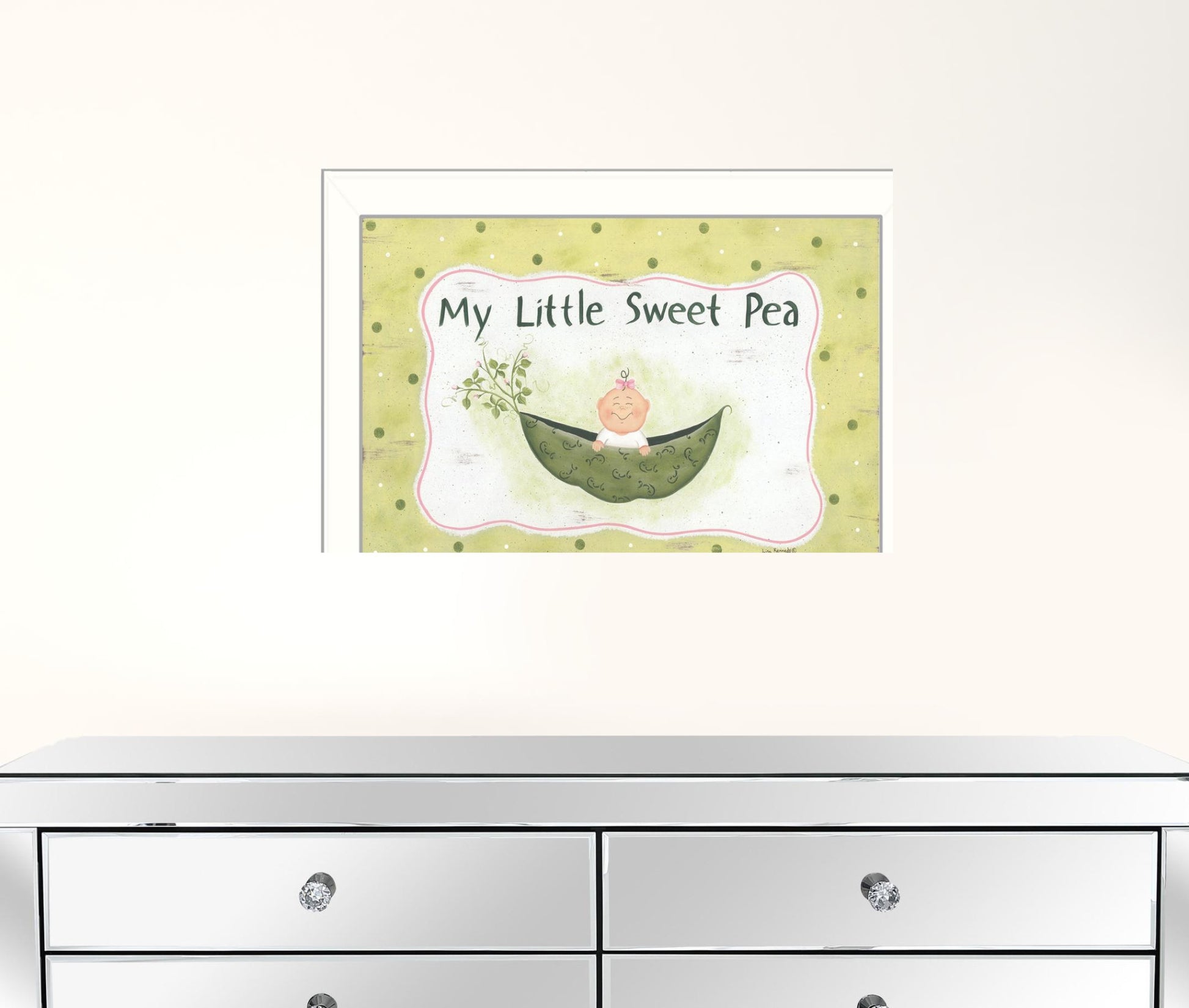 The my little sweet pea white framed print wall art is the perfect decorative accessory for your home. This print is a visual artistic expression that allows you to decorate your space in style. Reproduced for you on paper, this hanging decorative accent will be a trendy and fashionable way to dress your walls. Adding this hanging wall art to your space to make your room feel more finished and attractive. Instantly liven up your space with this art that brings color and dimension to your walls. 18 inches H x 14 inches W x 1 inches D