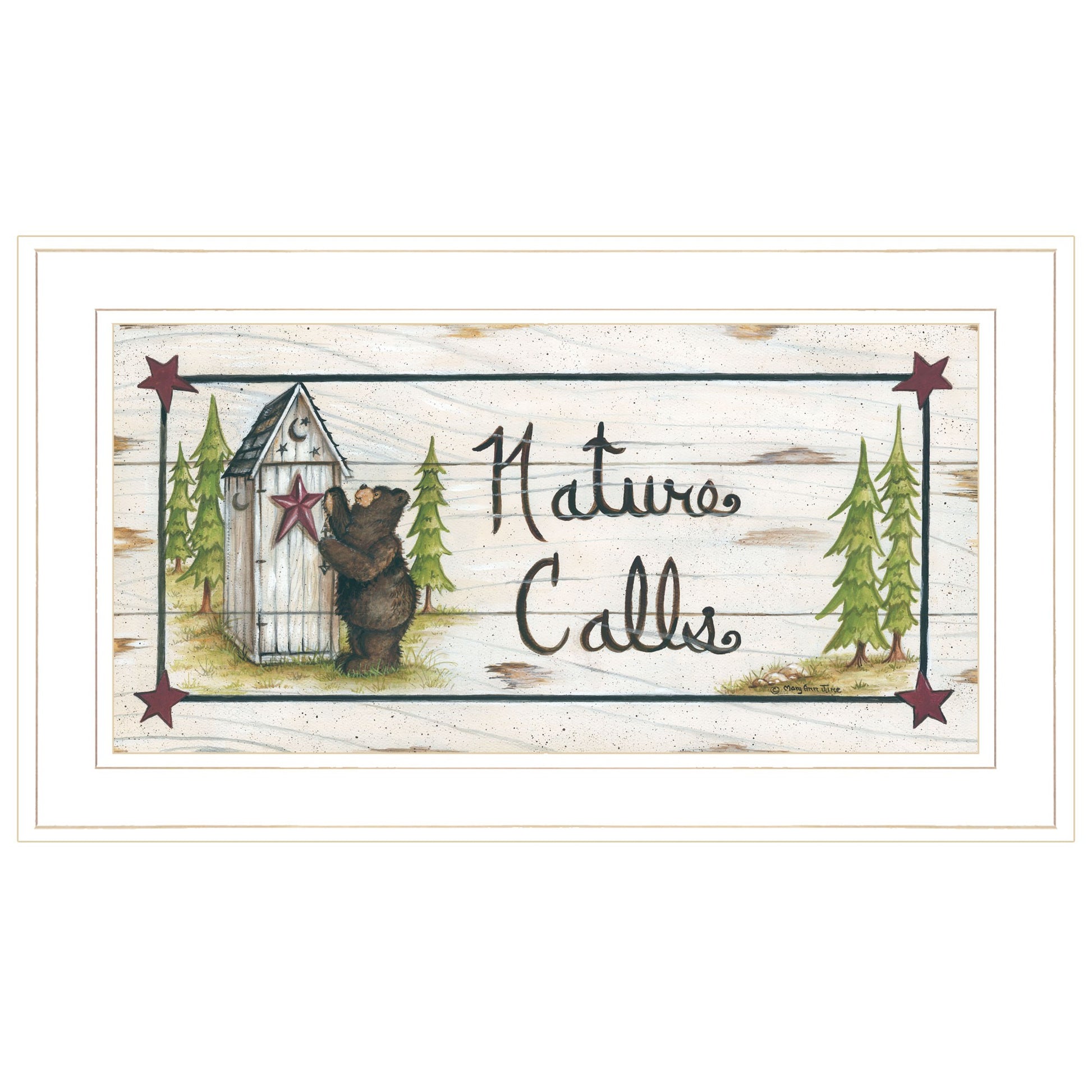Unique and decorative, this nature calls 1 white framed print wall art will leave a lasting impression. This print is a visual artistic expression that allows you to decorate your space in style. Reproduced for you on paper, this hanging decorative accent will be a trendy and fashionable way to dress your walls. Hang on your wall to add some up to date fashion and decoration. Utilize this opportunity to create a focal point in the room with this fabulous wall decor option. 12 inches H x 21 inches W x 1 inches D