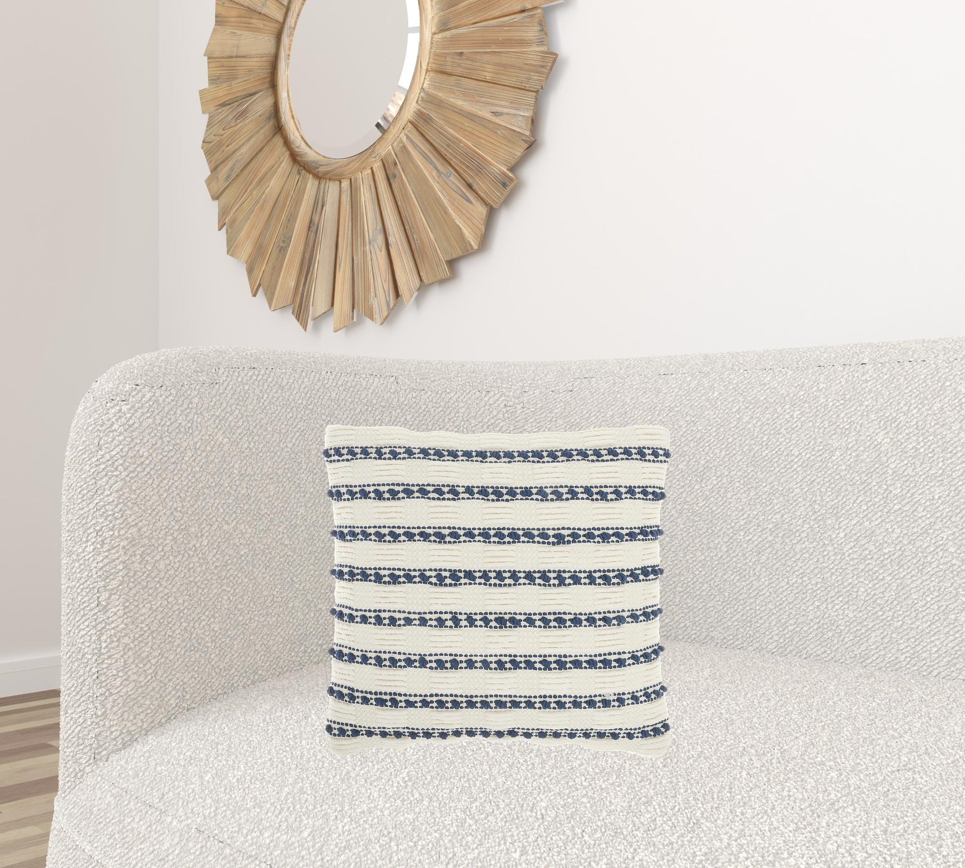 Navy Blue And Ivory Textured Stripes Throw Pillow