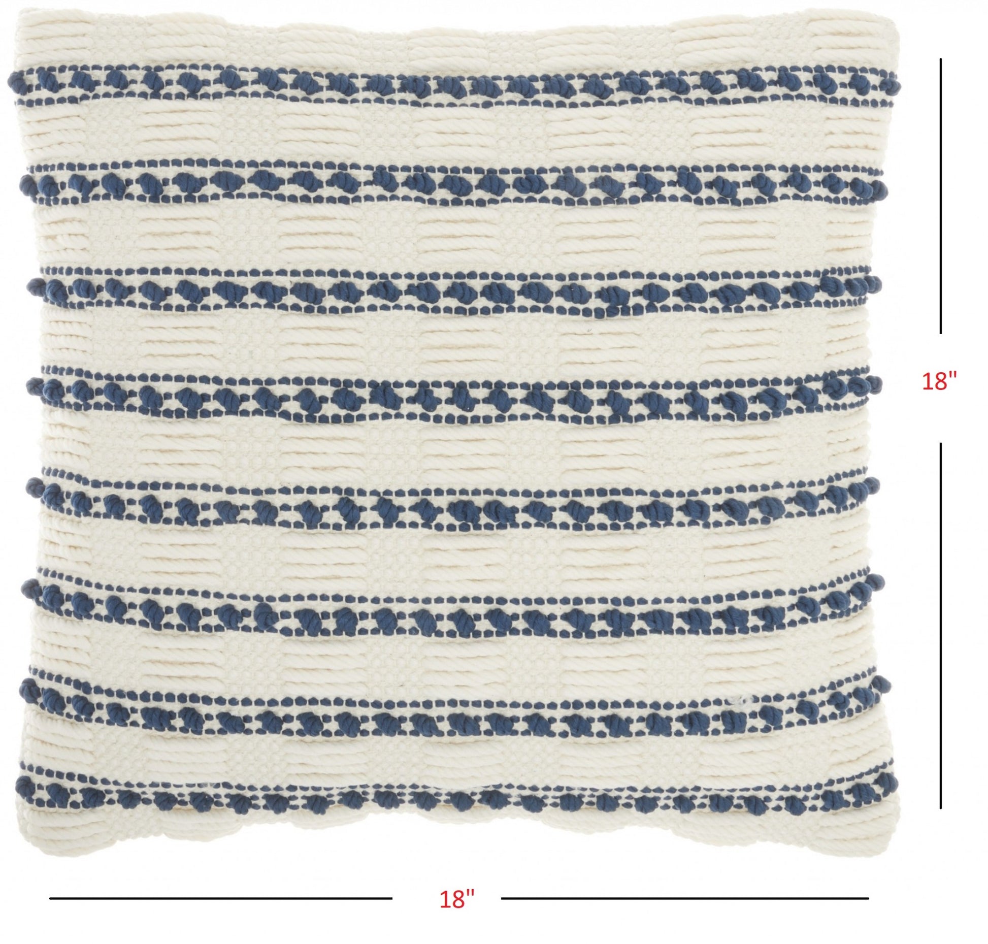 Brighten up your bedroom or living area with this Navy Blue and Ivory Textured Stripes Throw Pillow which is bound to seamlessly add to your contemporary and casual decor. The textured stripes are meant to deliver an amiable and welcoming feel while being playful to touch and hold. The texture and feel aren’t going anywhere over the years due to the use of 60% cotton and 40% polyester fabric that is also easy to wash. The navy blue and ivory tones are made to mend well with pastel colors or be eye-catching in darker spaces in an alluring way. 18” x 18” x 5"
