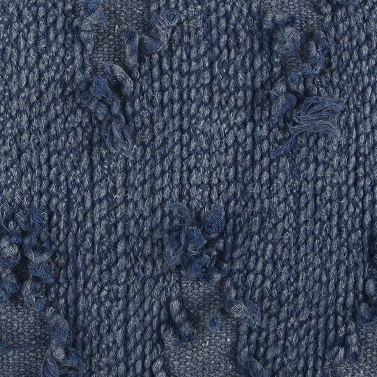 Highlighting the color of nightfall, this Navy Blue Twisted Chevron Pattern Throw Pillow can go well as a bold addition to your boho-chic space. The machine-applied cotton cording creates the enticing chevron pattern all over the navy blue base to add texture to the pillow for visual interest. The pillow is stonewashed to give a crafted vintage look while the knife edge emphasizes a clean and polished appearance to blend in amidst modern decor. The polyfill insert provides ultimate plush nature and the solid matching back with hidden zipper makes cleaning easy. Pick this classically patterned throw pillow to enhance your bohemian or transitional home in an instant. 26” x 14” x 6.25”