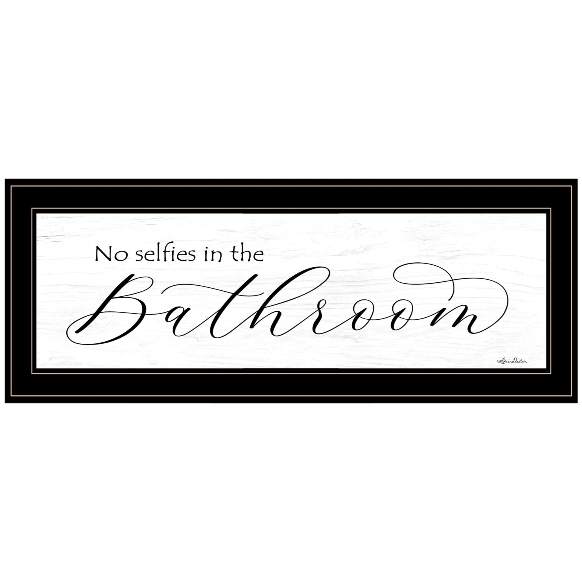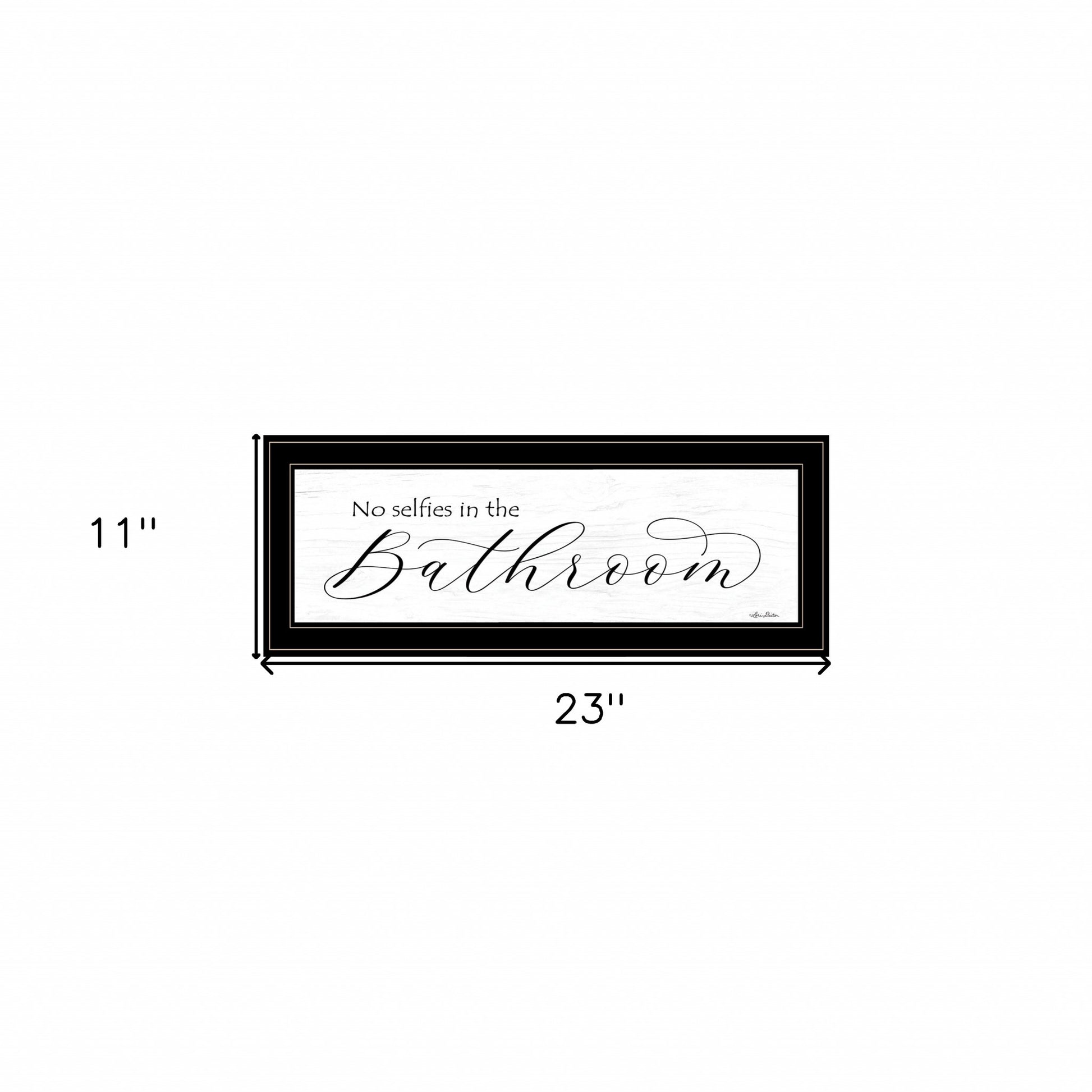 Unique and decorative, this no selfies in the bathroom 3 black framed print wall art will leave a lasting impression. This print is a visual artistic expression that allows you to decorate your space in style. Reproduced for you on paper, this hanging decorative accent will be a trendy and fashionable way to dress your walls. Adding this hanging wall art to your space to make your room feel more finished and attractive. Utilize this opportunity to create a focal point in the room with this fabulous wall decor option. 11 inches H x 23 inches W x 1 inches D
