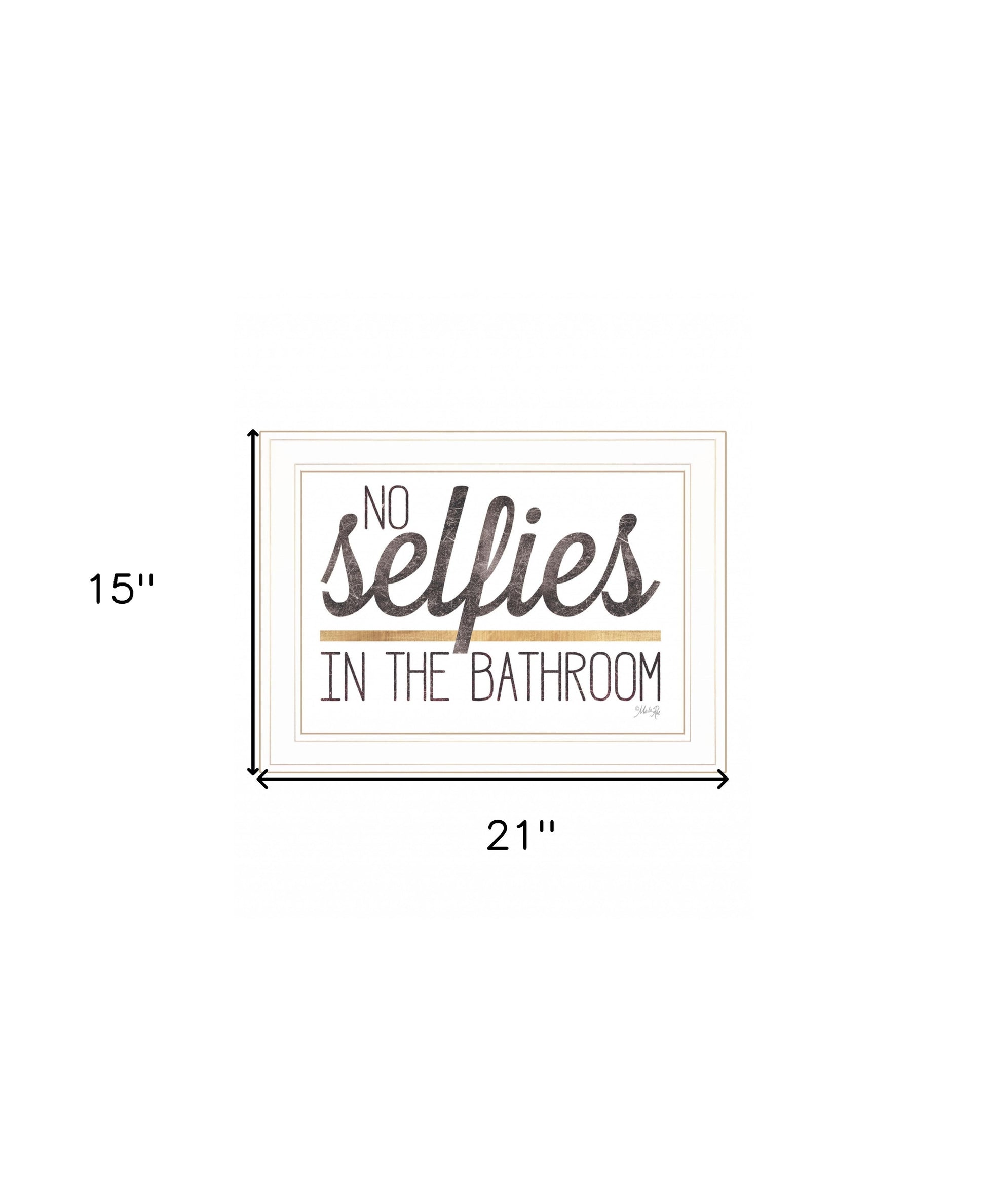 This no selfies in the bathroom 5 white framed print wall art will add a beautiful decorative accent to your decor. This print is a visual artistic expression that allows you to decorate your space in style. Reproduced for you on wood, this hanging decorative accent will be a trendy and fashionable way to dress your walls in a rustic and modern farmhouse vibe. Adding this hanging wall art to your space to make your room feel more finished and attractive. Utilize this opportunity to create a focal point in the room with this fabulous wall decor option. 15 inches H x 21 inches W x 1 inches D