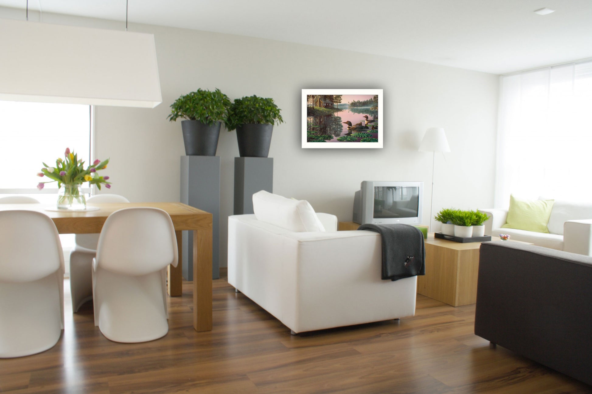 Bring some sizzle to your space with this eye-catching northern tranquility 2 white framed print wall art. This print is a visual artistic expression that allows you to decorate your space in style. Reproduced for you on paper, this hanging decorative accent will be a trendy and fashionable way to dress your walls. Hang on your wall to add some up to date fashion and decoration. Utilize this opportunity to create a focal point in the room with this fabulous wall decor option. 14 inches H x 20 inches W x 1 inches D