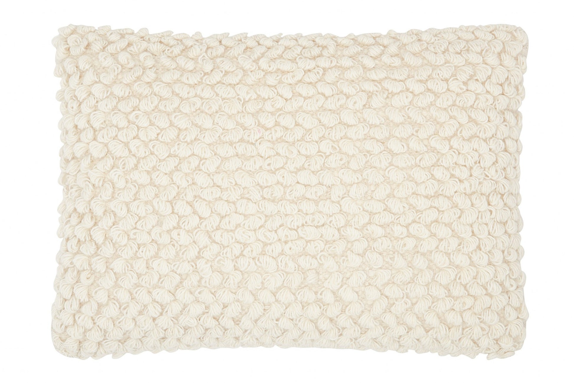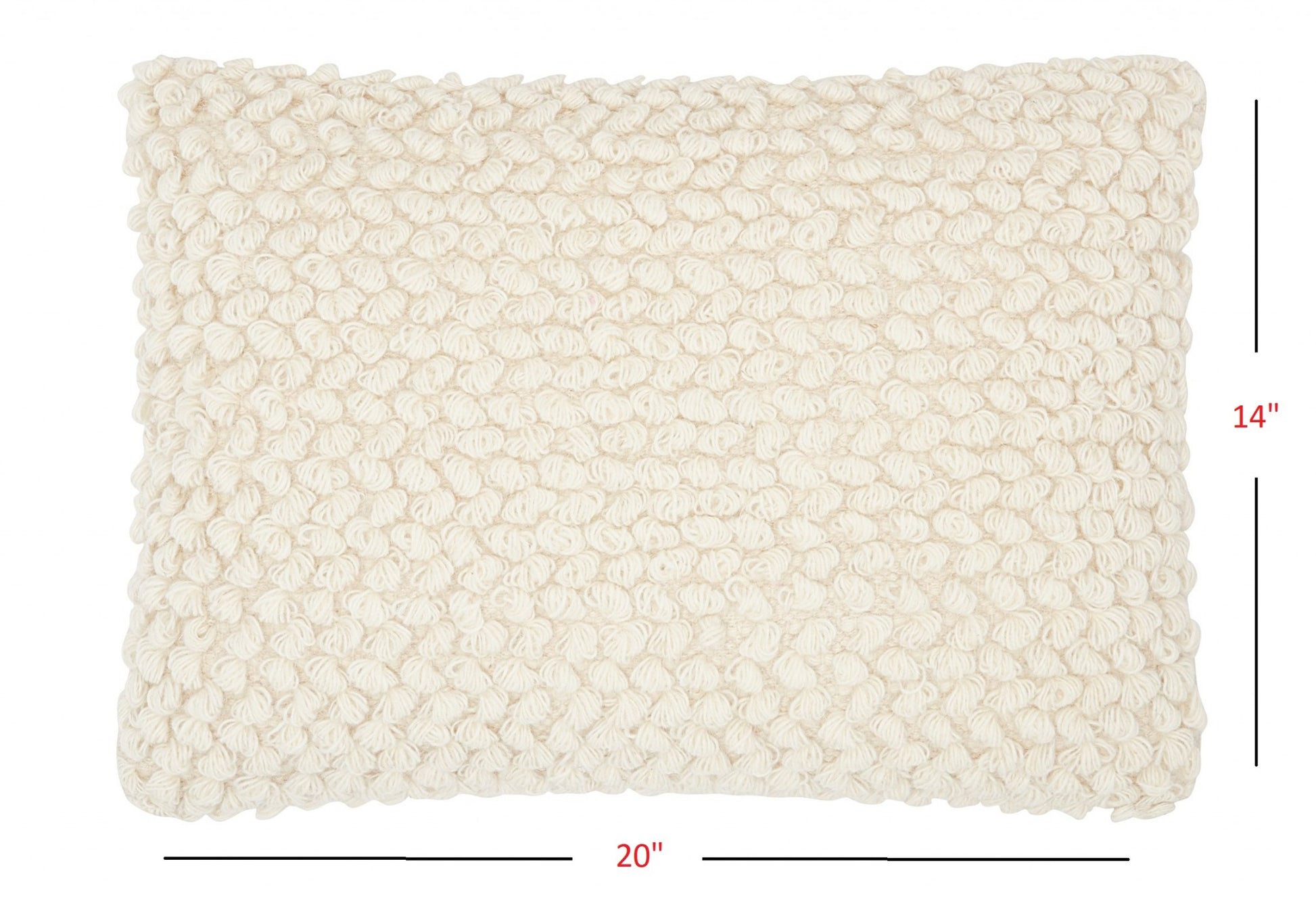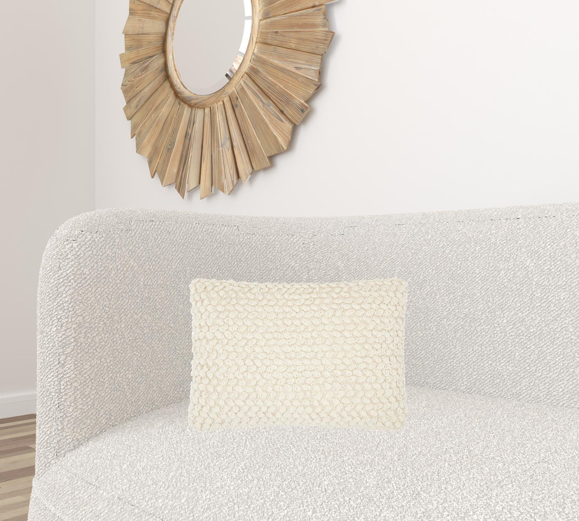 Invoke the sense of touch through textural design mixed with unmatched comfort with this Off-White Knotted Detail Lumbar Pillow. This pillow has a square narrow rectangular shape with rounded corners. The pillow is covered in a off-white colored fabric that has knotted details on it. The knotted details are made of thin thread and add depth and dimension to the overall look of this throw pillow. This pillow will look great on your bed, on your couch, or even on your favorite chair and elevate the whole space. The unique yet minimal design of this throw pillow allows you to use it with any existing colors or decor styles you already have in your home. 6" H x 14" W x 20" D